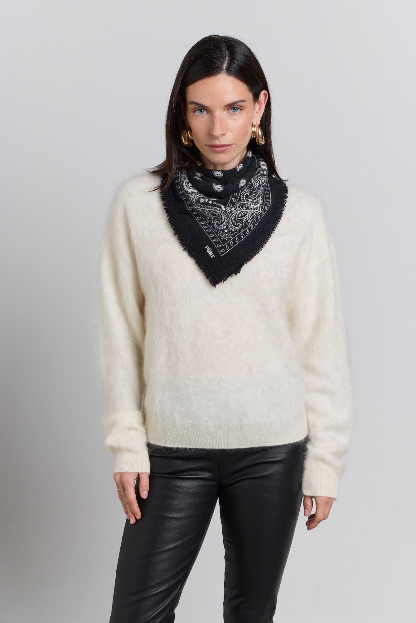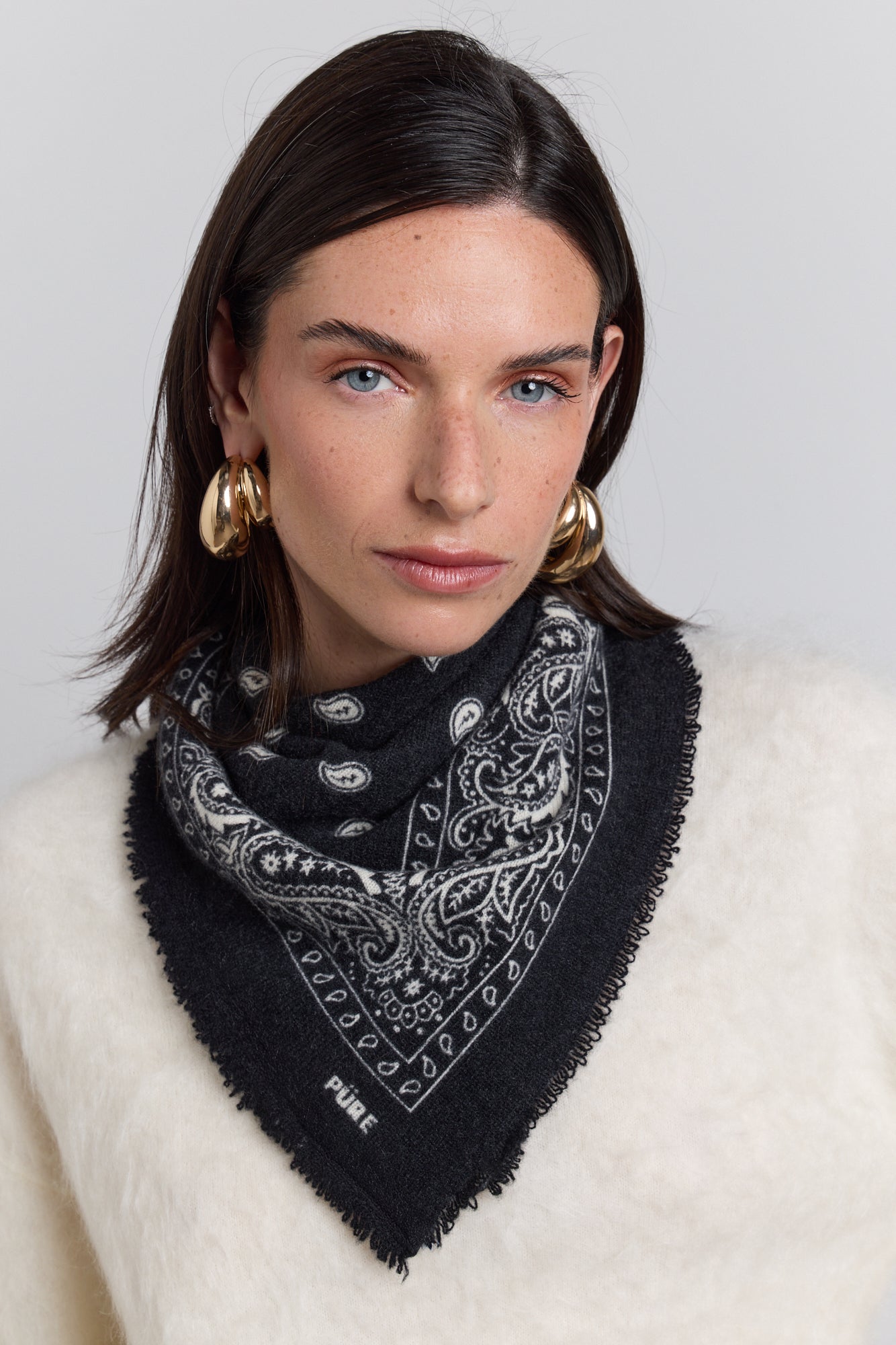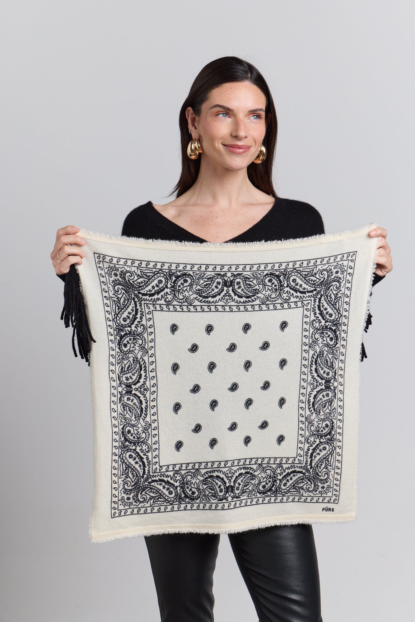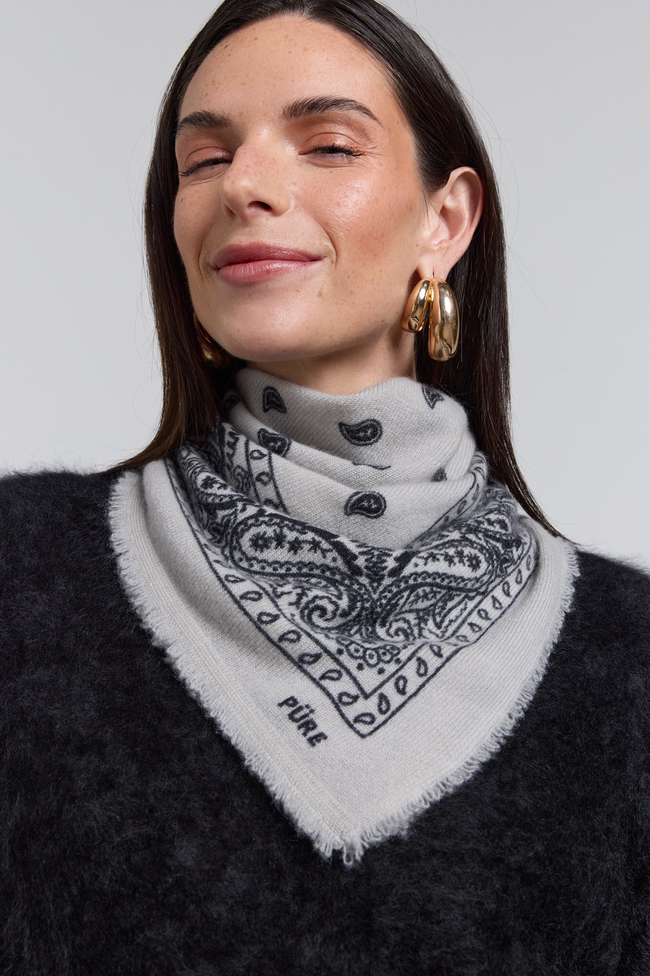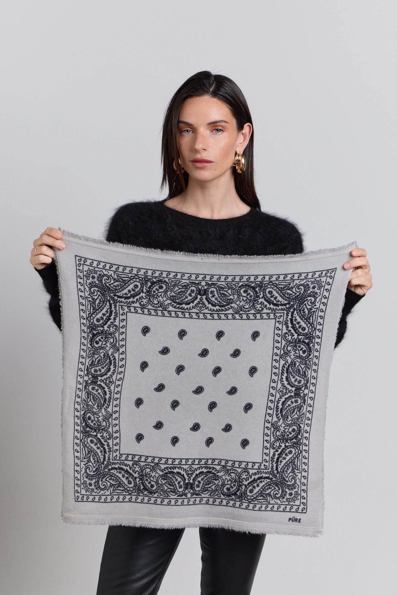 Classique et indémodable, le bandana PRESLEY en 100% cachemire PÜRE revisite le célèbre motif cachemire (paisley) avec élégance. Doux, léger et raffiné, il apporte une touche d’authenticité et de style à toutes vos tenues. Polyvalent, il se porte noué autour du cou, dans les cheveux ou comme accessoire de sac pour un look affirmé et intemporel.