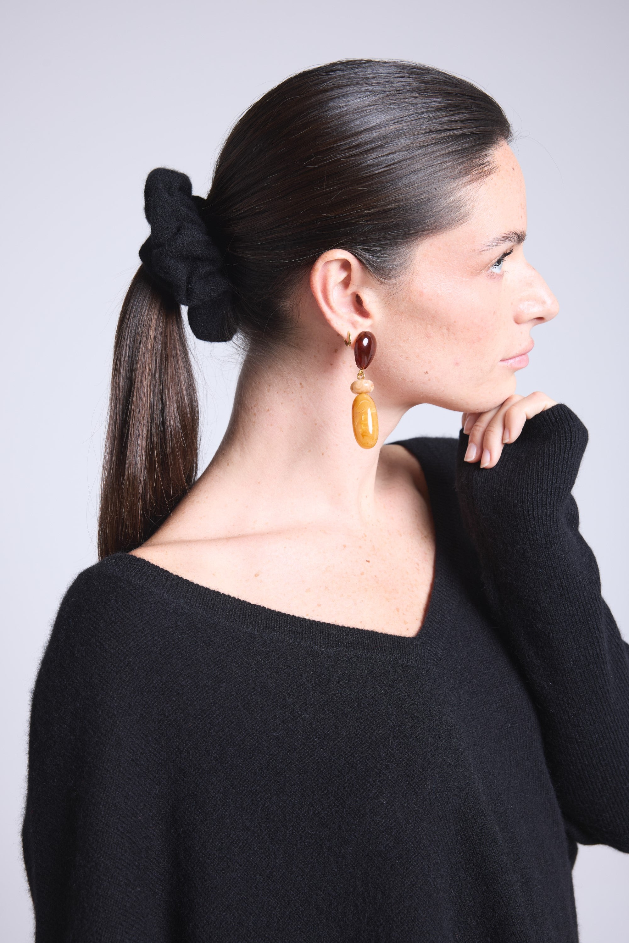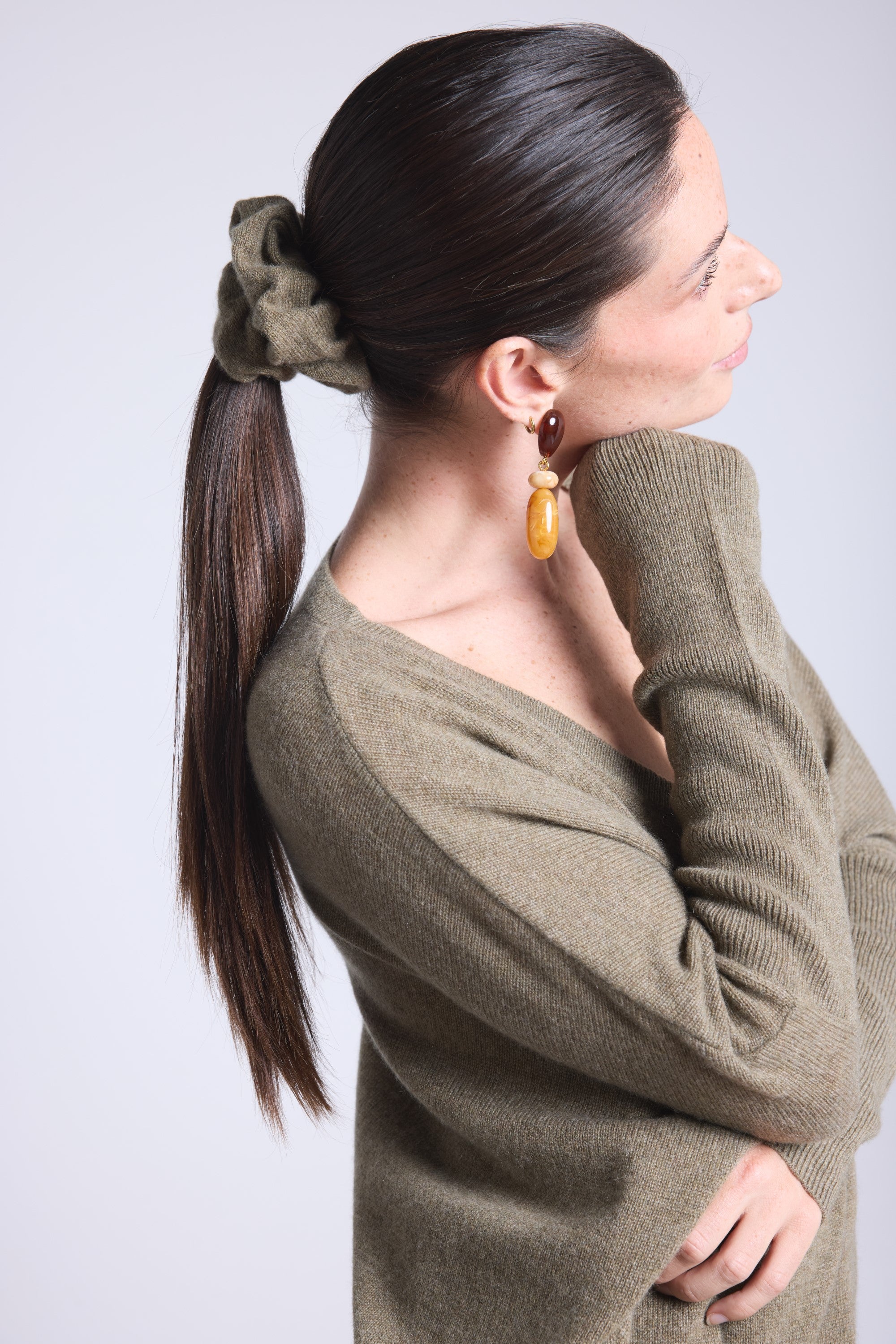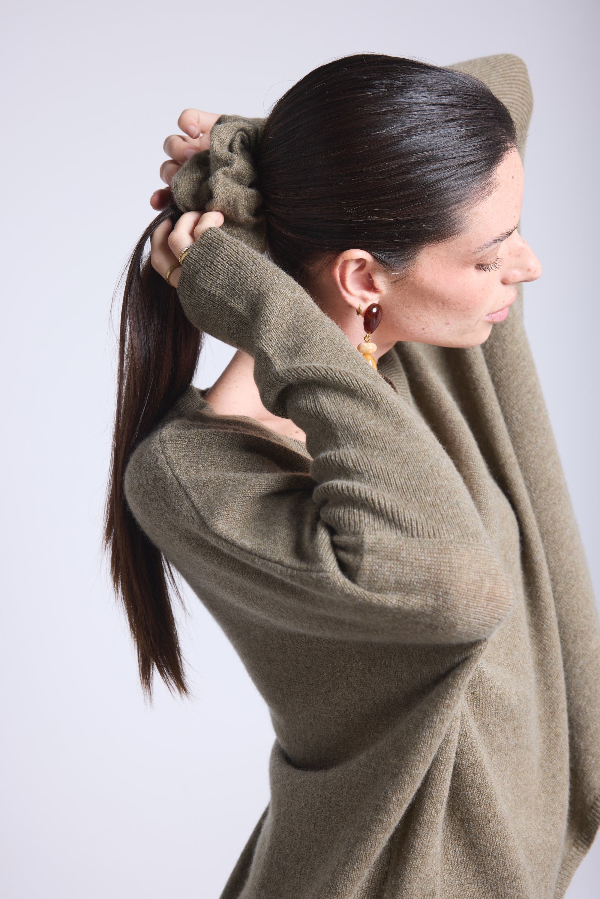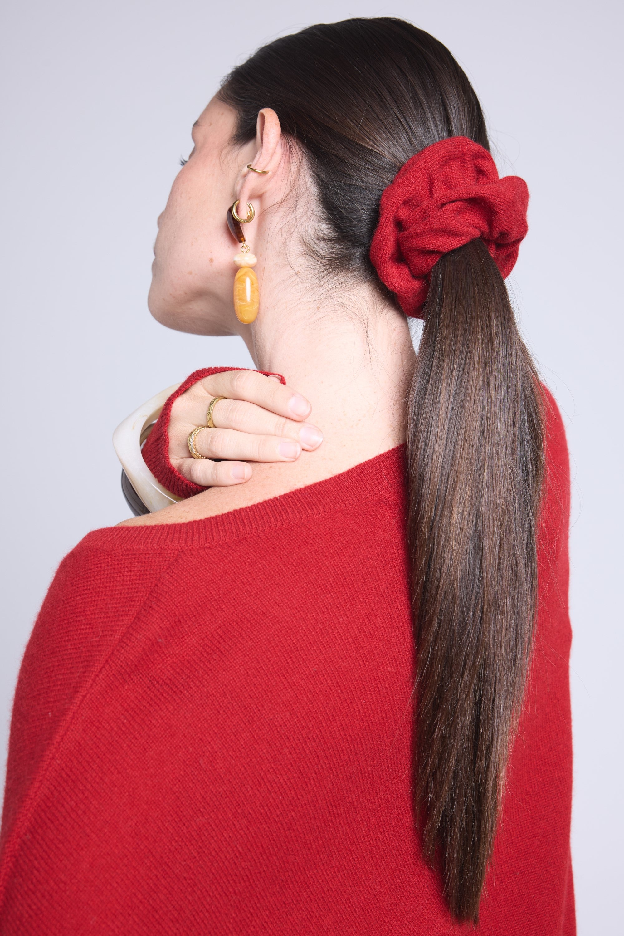 Notre chouchou CACHOU en 100% cachemire PÜRE est l’accessoire douceur par excellence. Léger, moelleux et délicat, il respecte vos cheveux tout en apportant une touche raffinée à votre coiffure. Porté en queue-de-cheval, en chignon ou simplement autour du poignet, il devient un petit détail qui change tout.