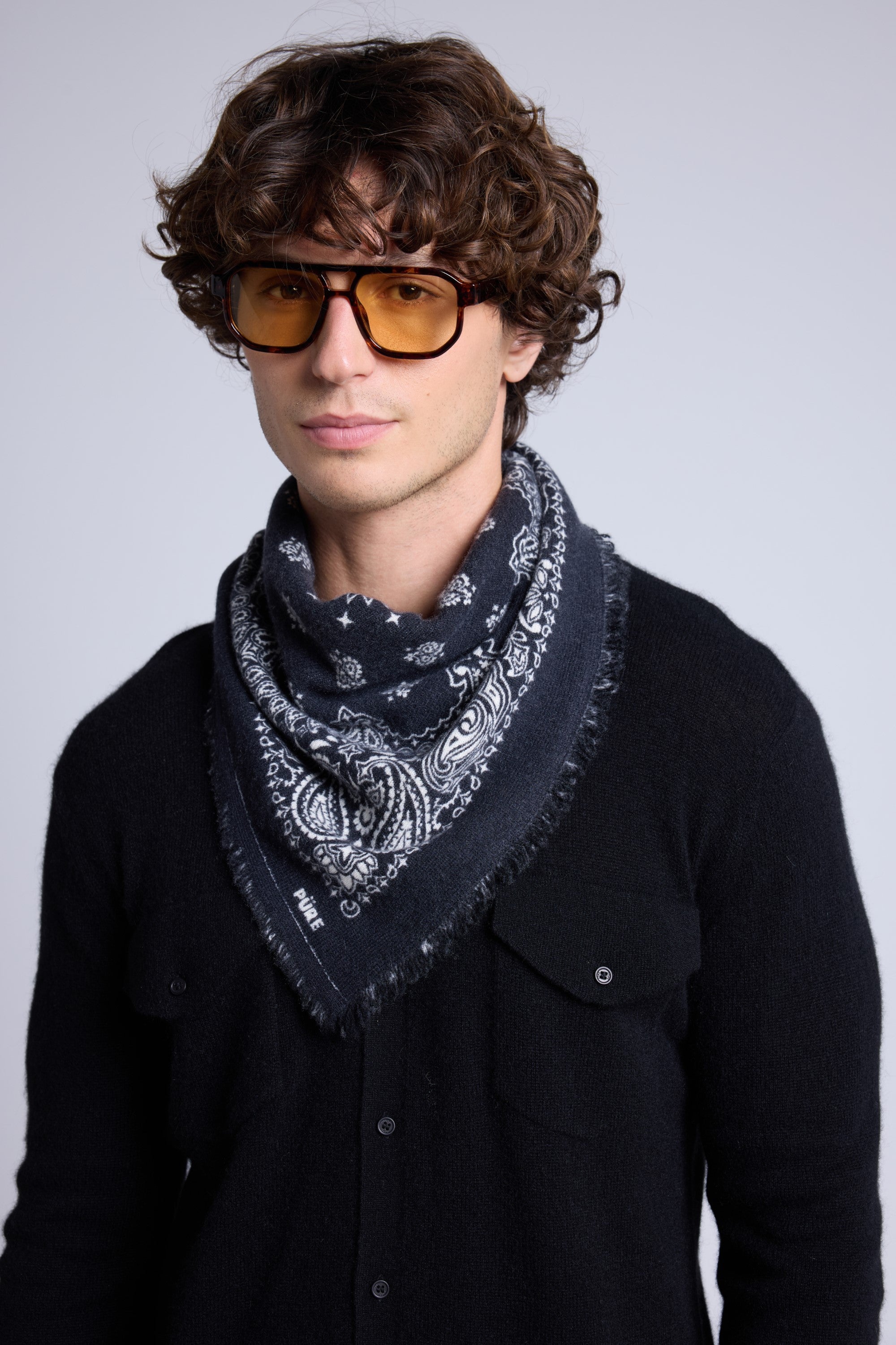 Best-seller de notre collection, le bandana APACHE en 100% cachemire PÜRE incarne l’élégance intemporelle et l’esprit d’aventure. Son motif paisley ornemental et son centre graphique raffiné en font une pièce iconique, douce et légère, que l’on porte autour du cou, dans les cheveux ou nouée à un sac. Un incontournable qui traverse les saisons sans perdre de son charme.