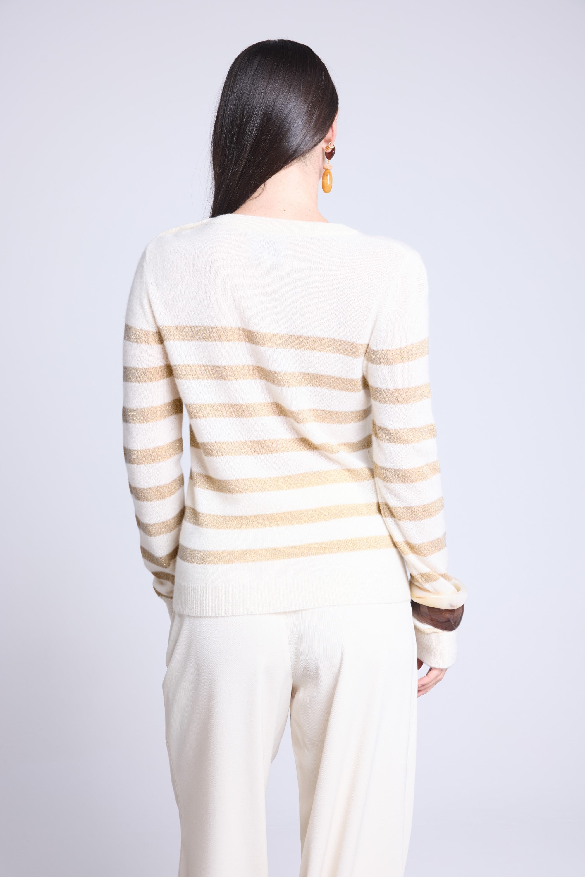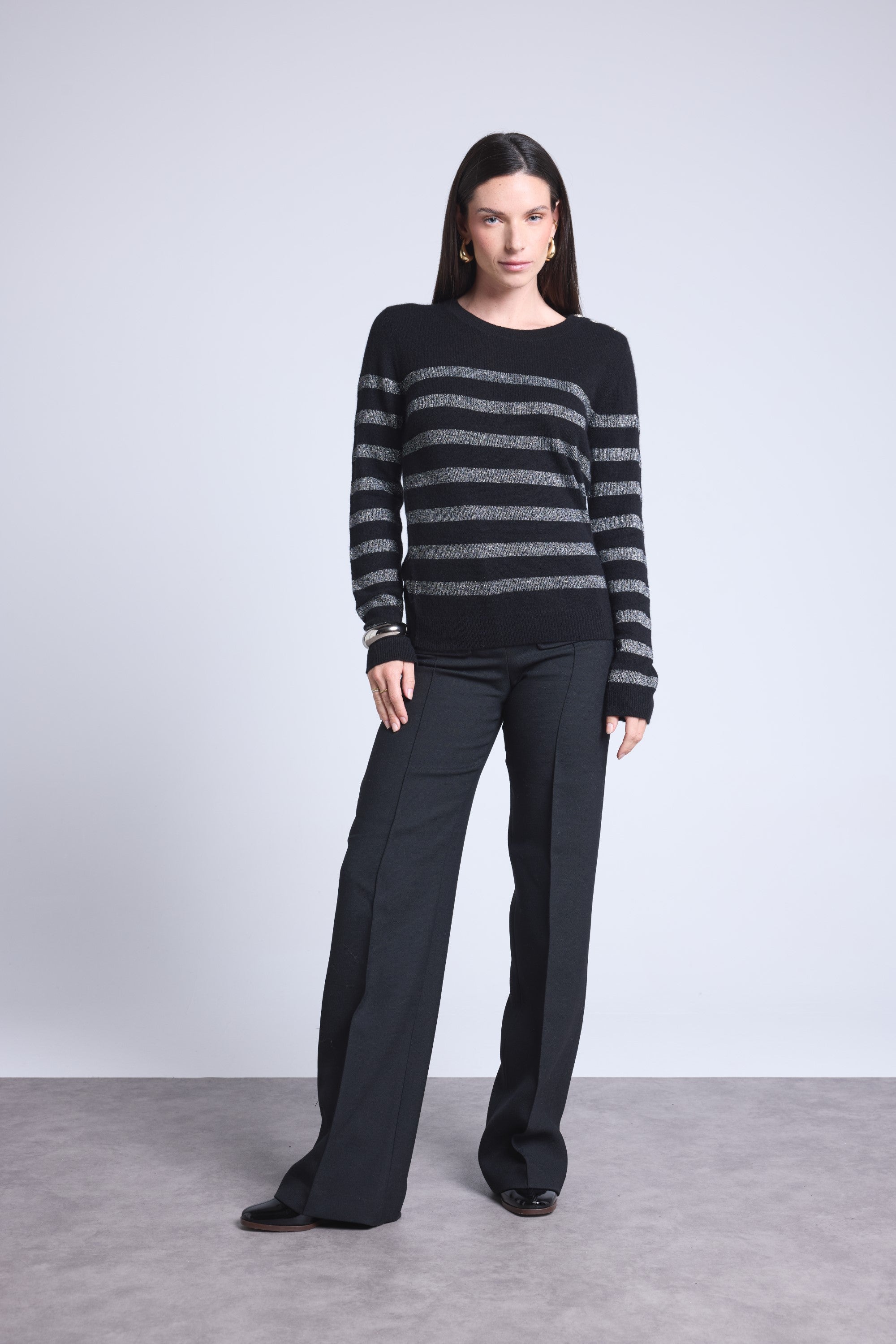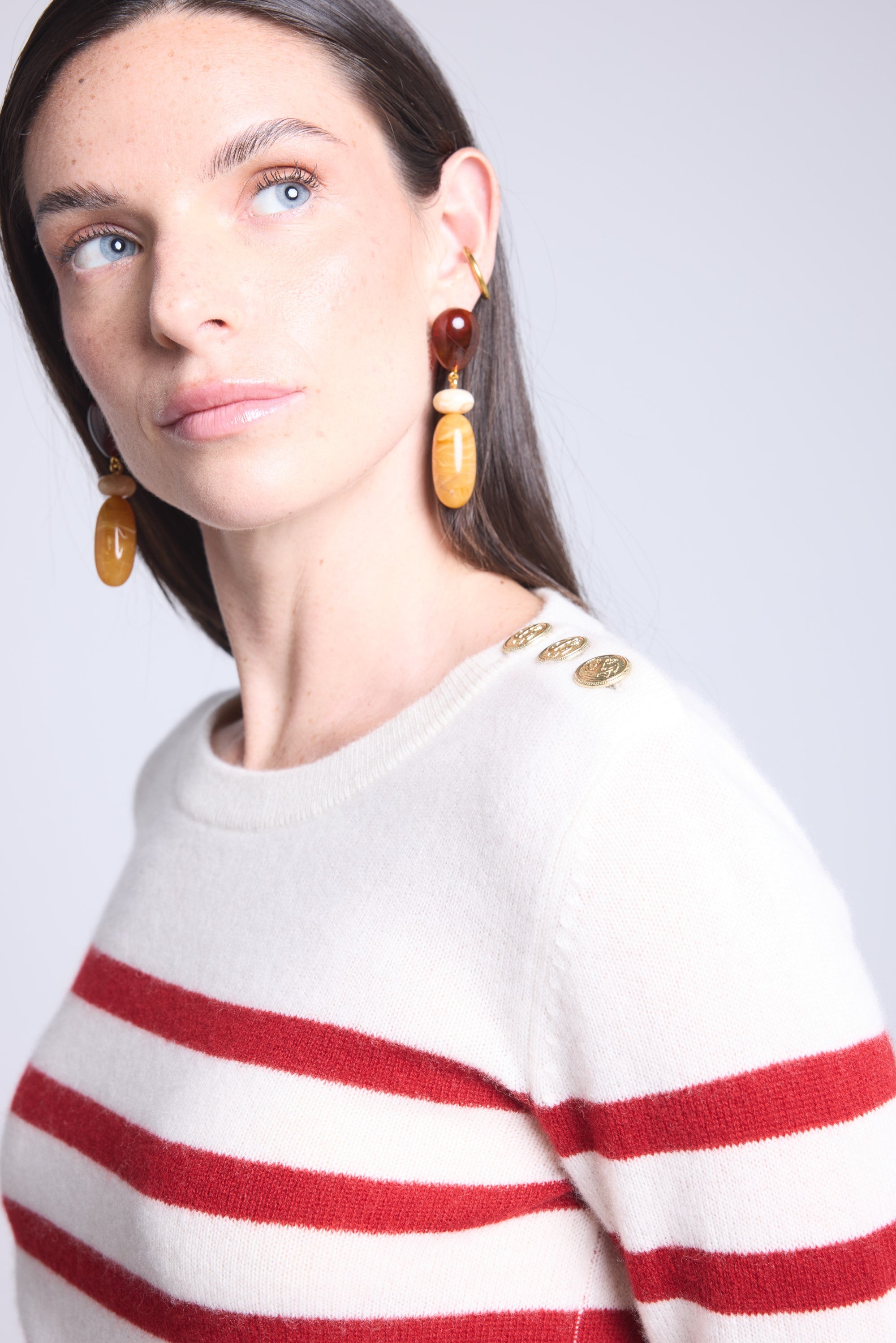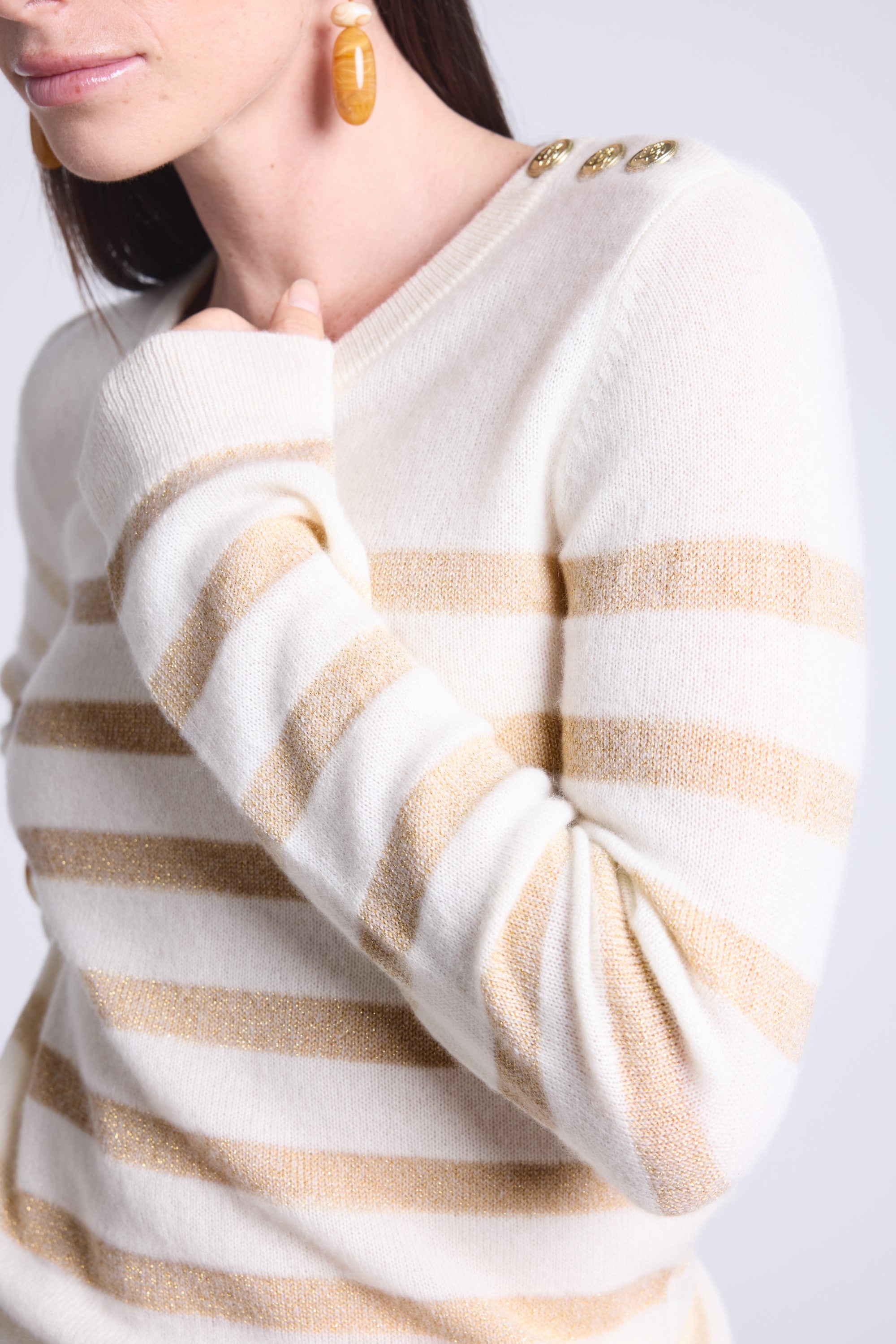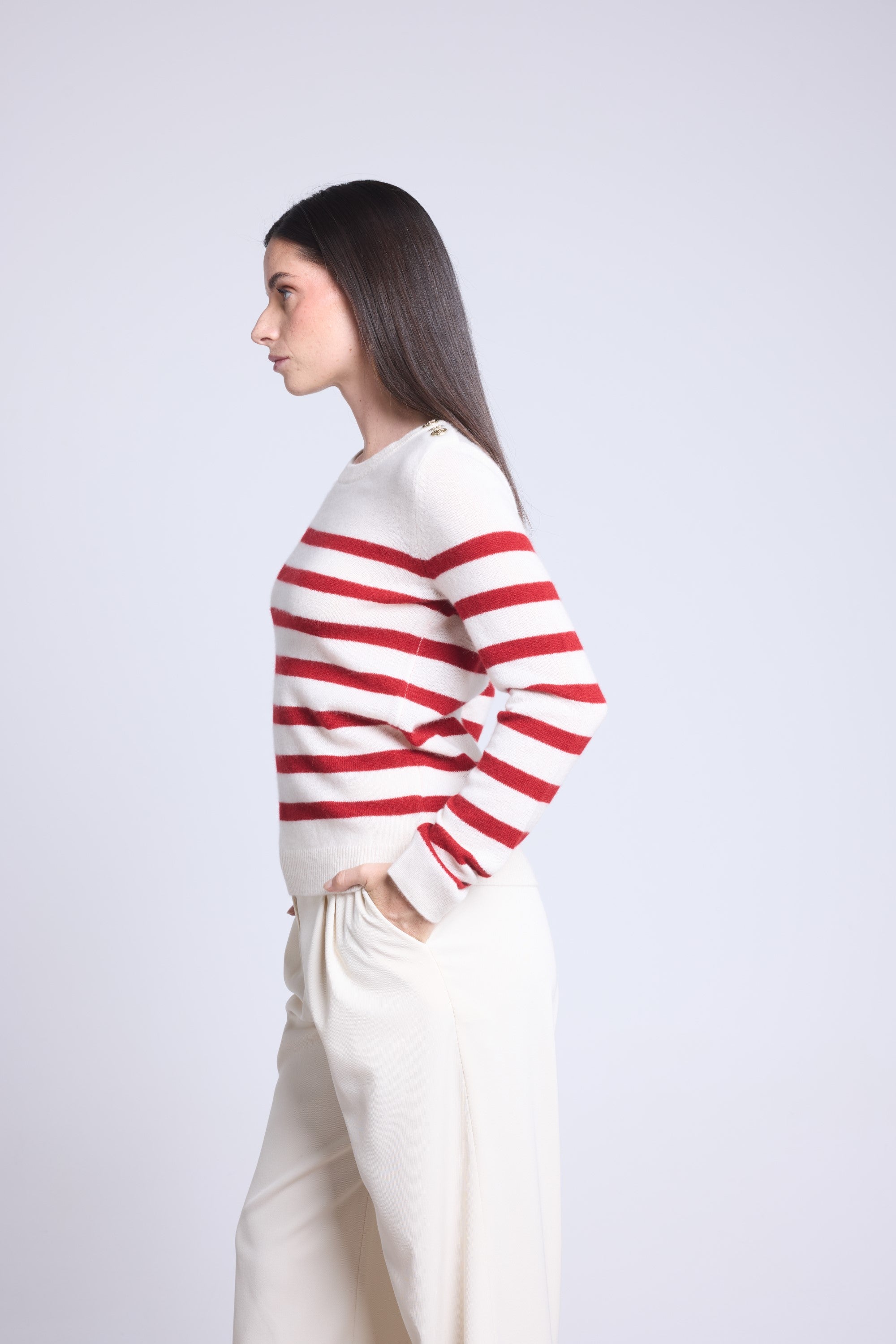 Un esprit marin revisité avec une touche chic : des rayures fines et équilibrées. sublimées par une patte épaule ornée de trois boutons. Une pièce à la fois raffinée et intemporelle, parfaite pour rehausser une silhouette simple avec élégance.