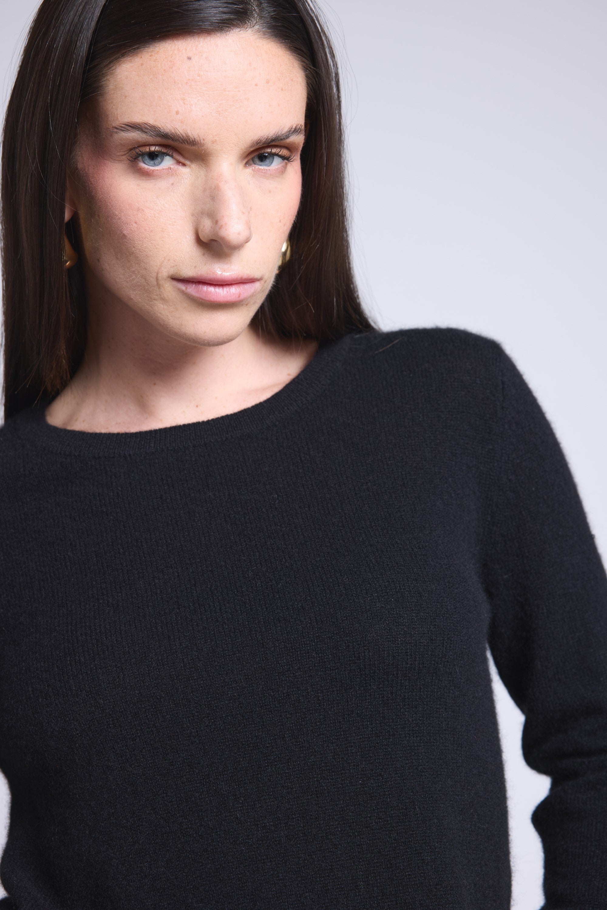 Ce pull col rond, en cachemire double fil, incarne la simplicité sophistiquée. Avec sa coupe légèrement ajustée et son col rond parfaitement dessiné, il se glisse aussi bien sous une veste tailleur qu’il se porte à même la peau, pour une allure élégante et sans effort.
