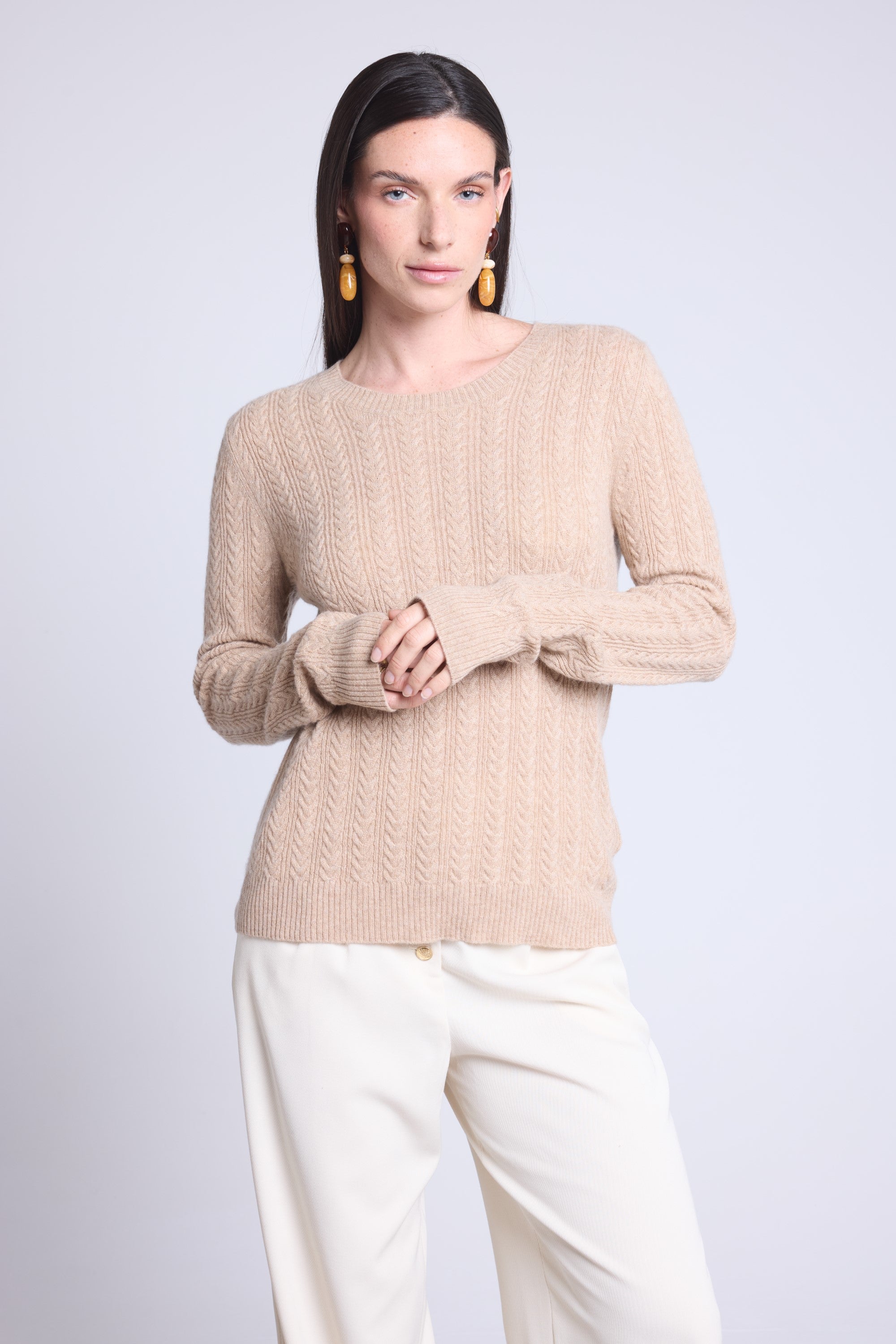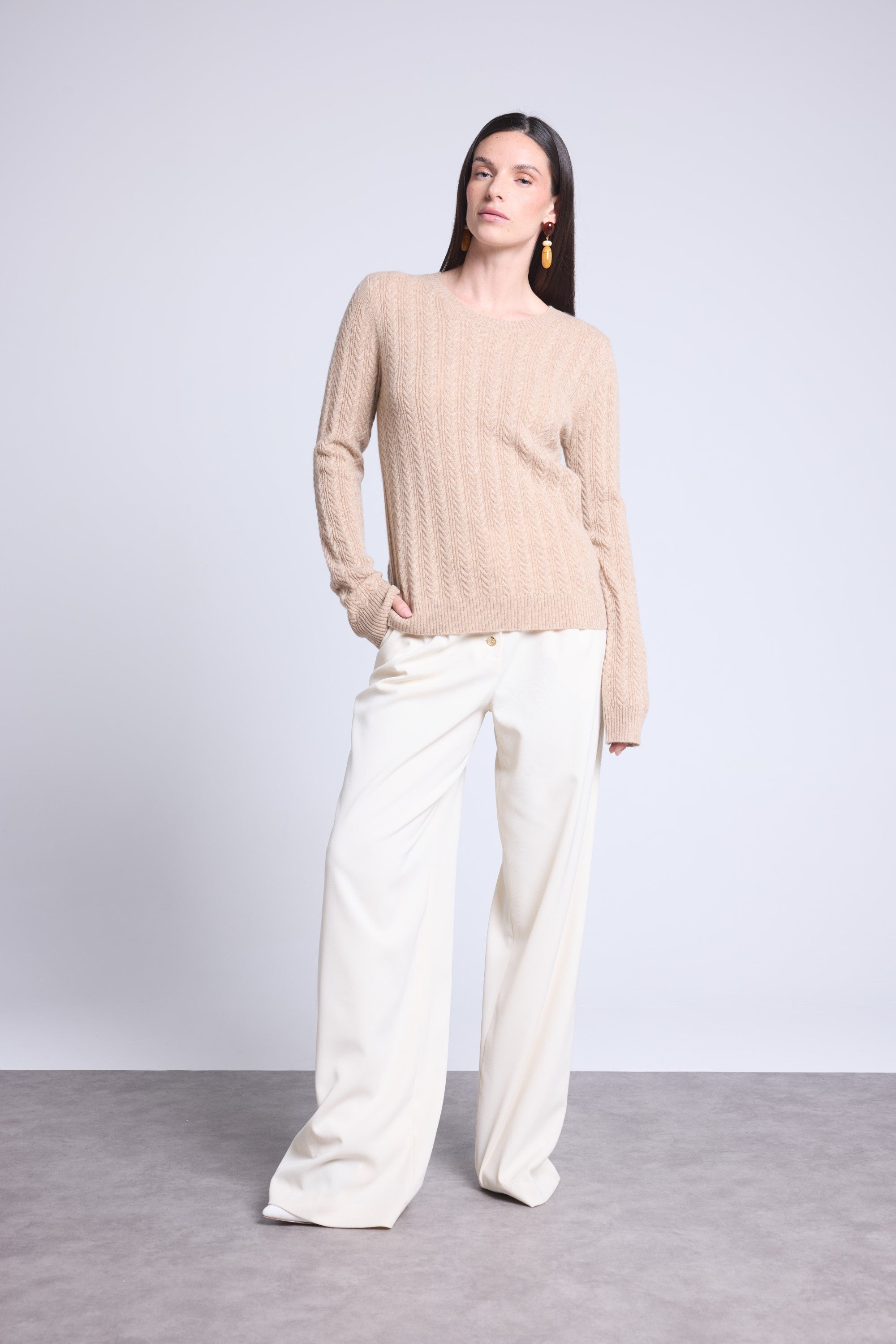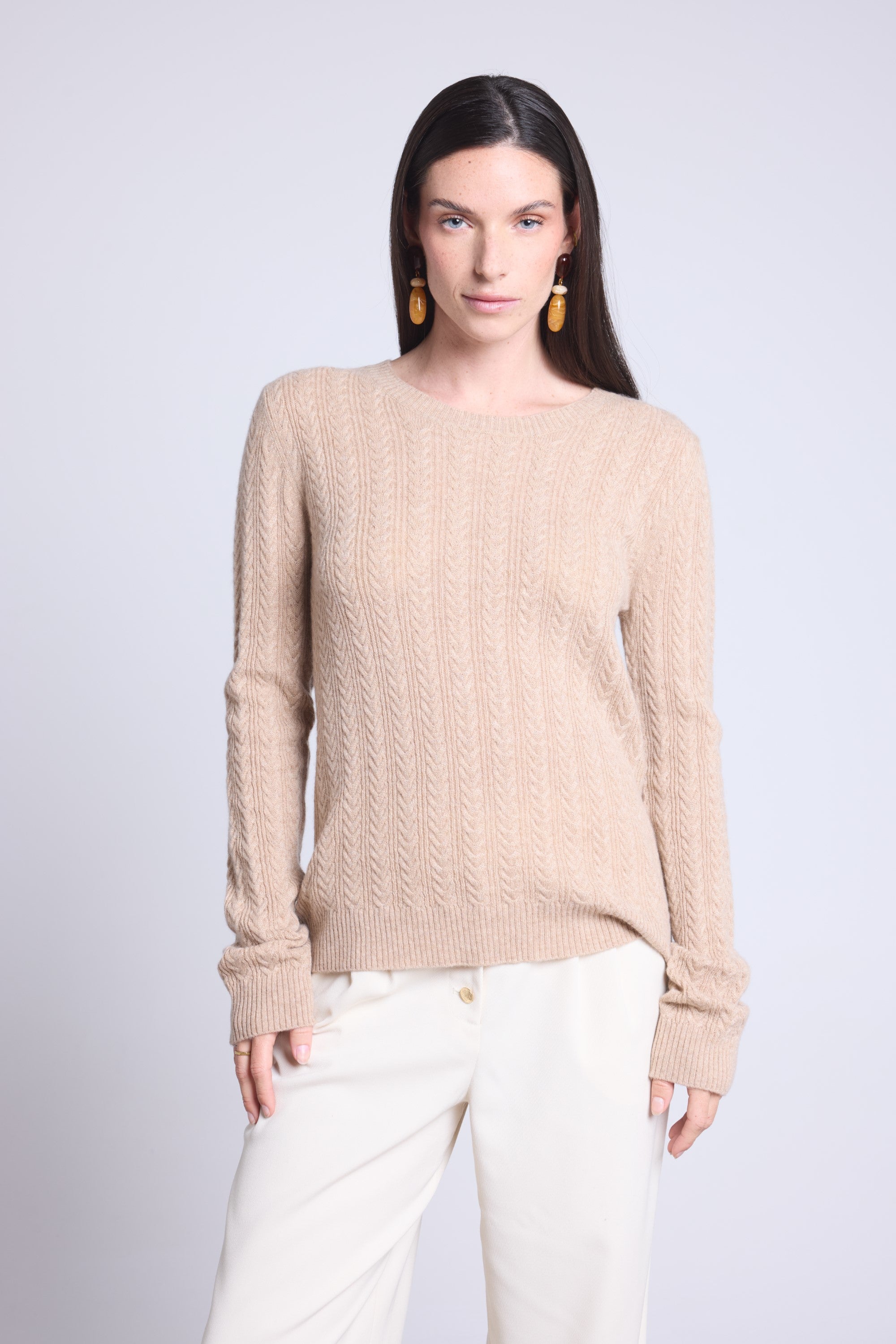 Pull col rond en 100% cachemire, tricoté en 2 fils, jauge 12GG, alliant confort luxueux et élégance discrète.