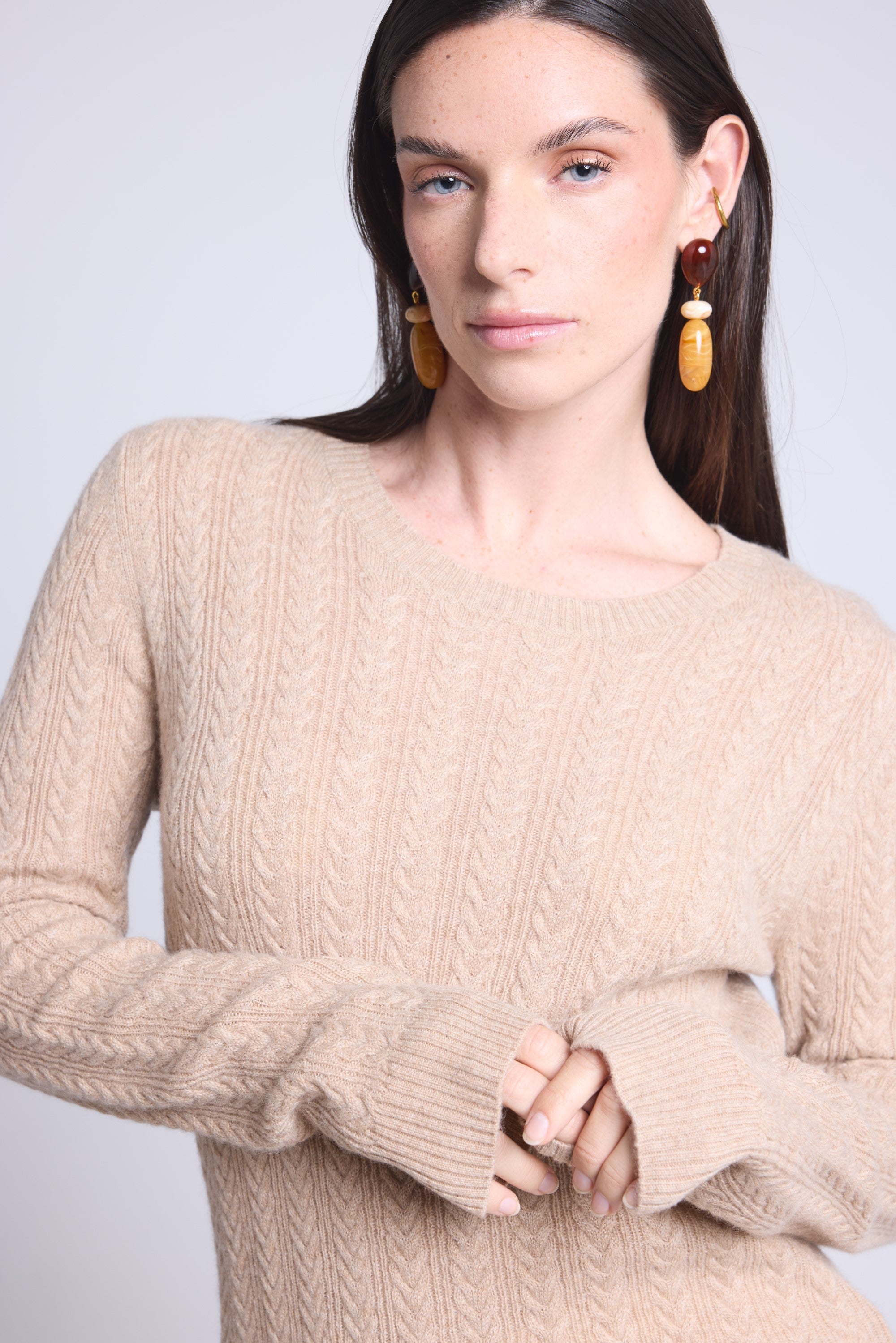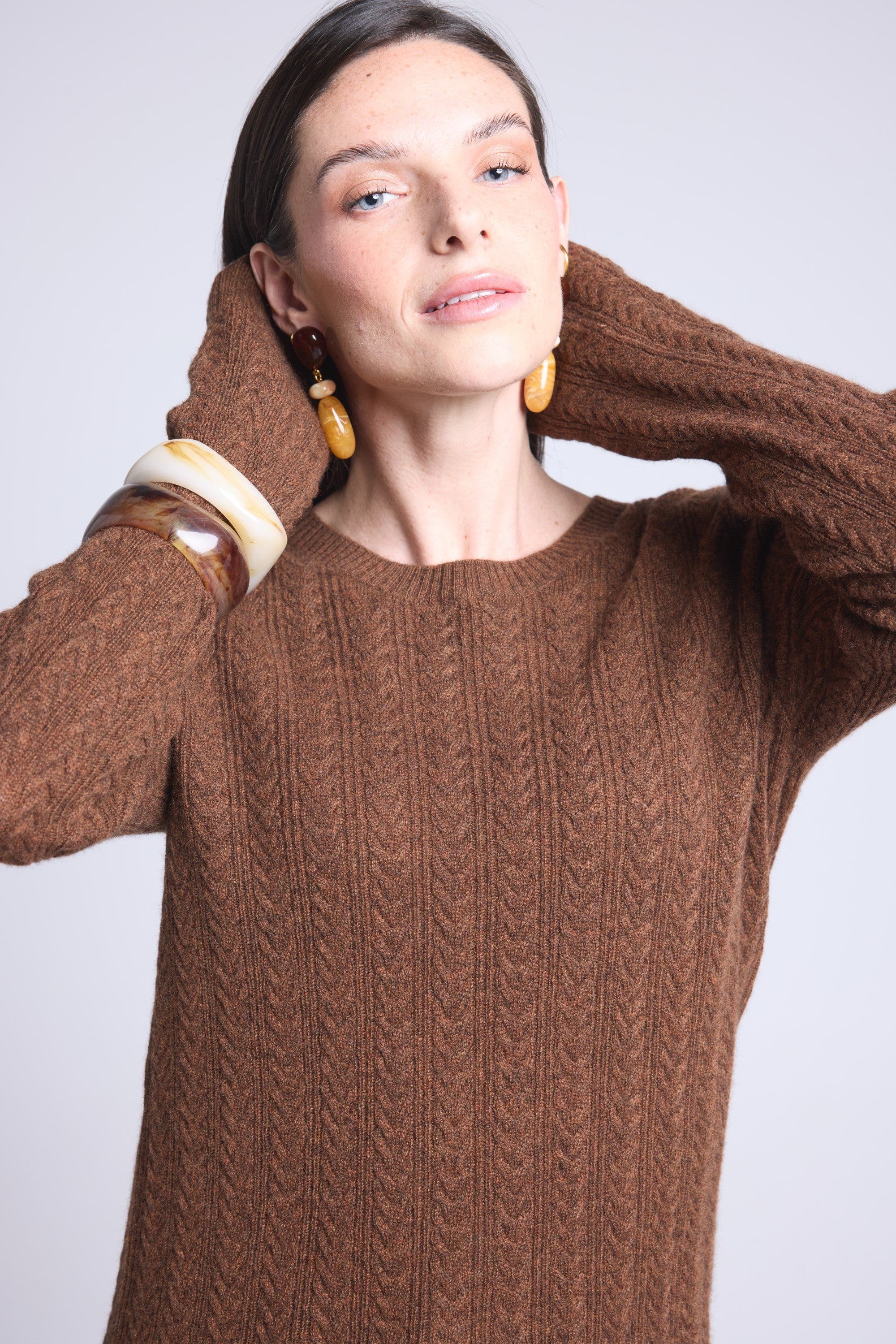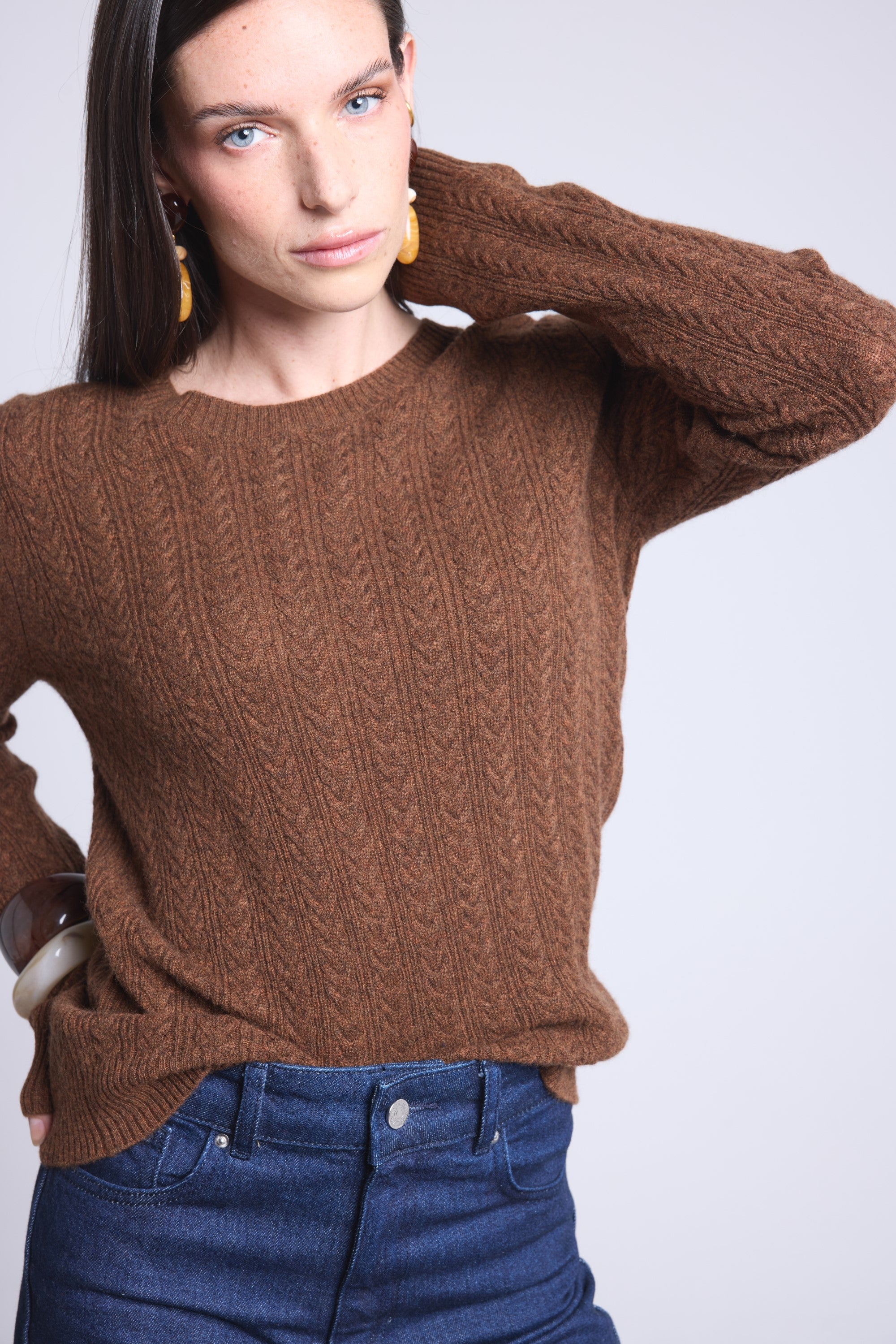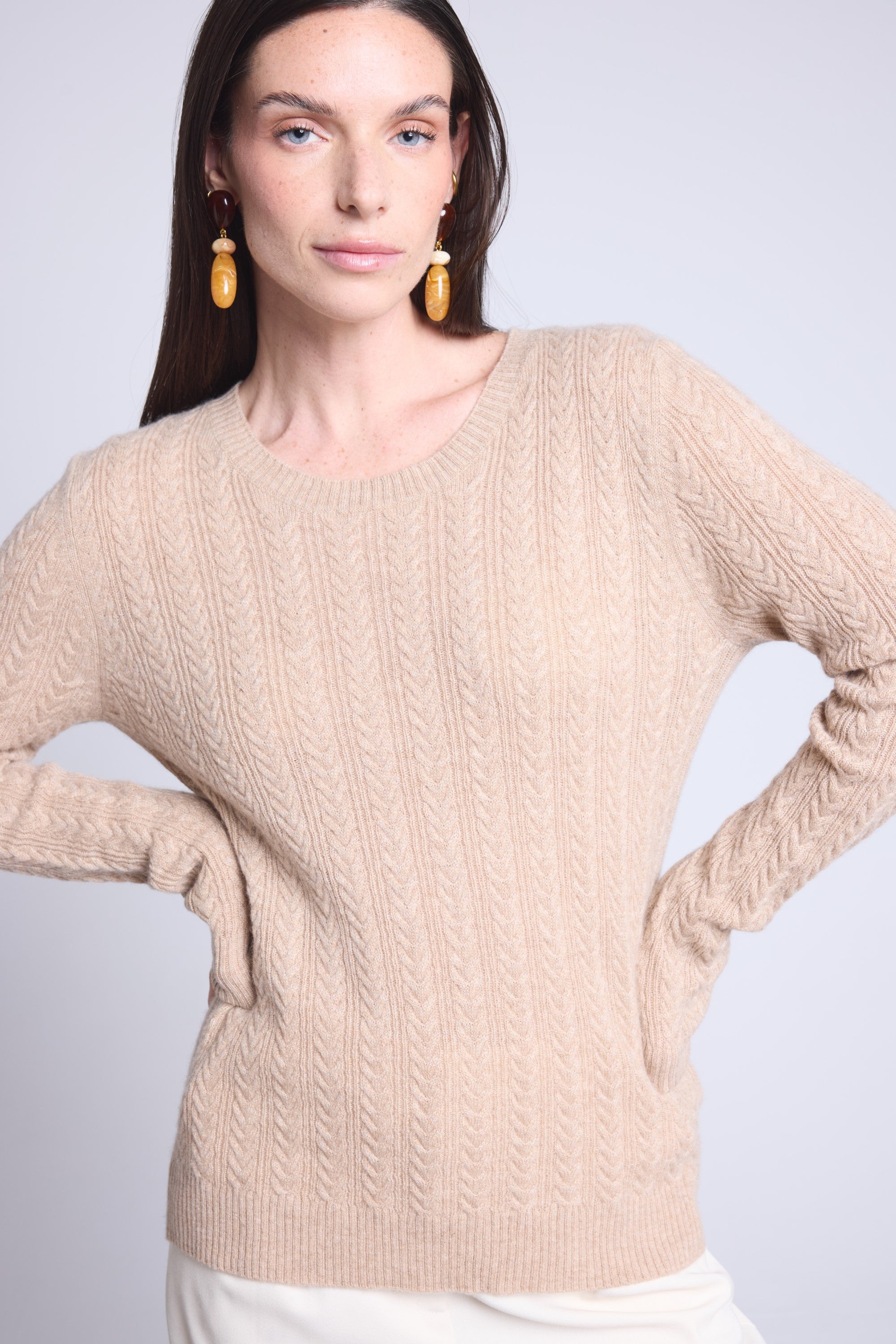 Pull col rond en 100% cachemire, tricoté en 2 fils, jauge 12GG, alliant confort luxueux et élégance discrète.