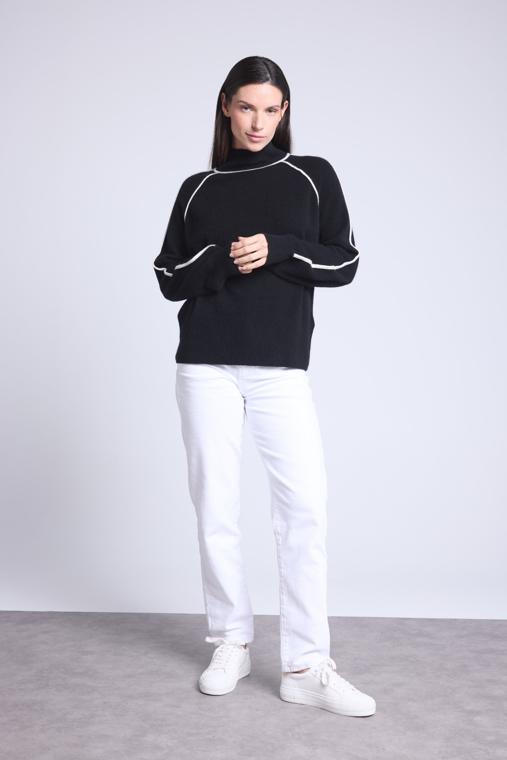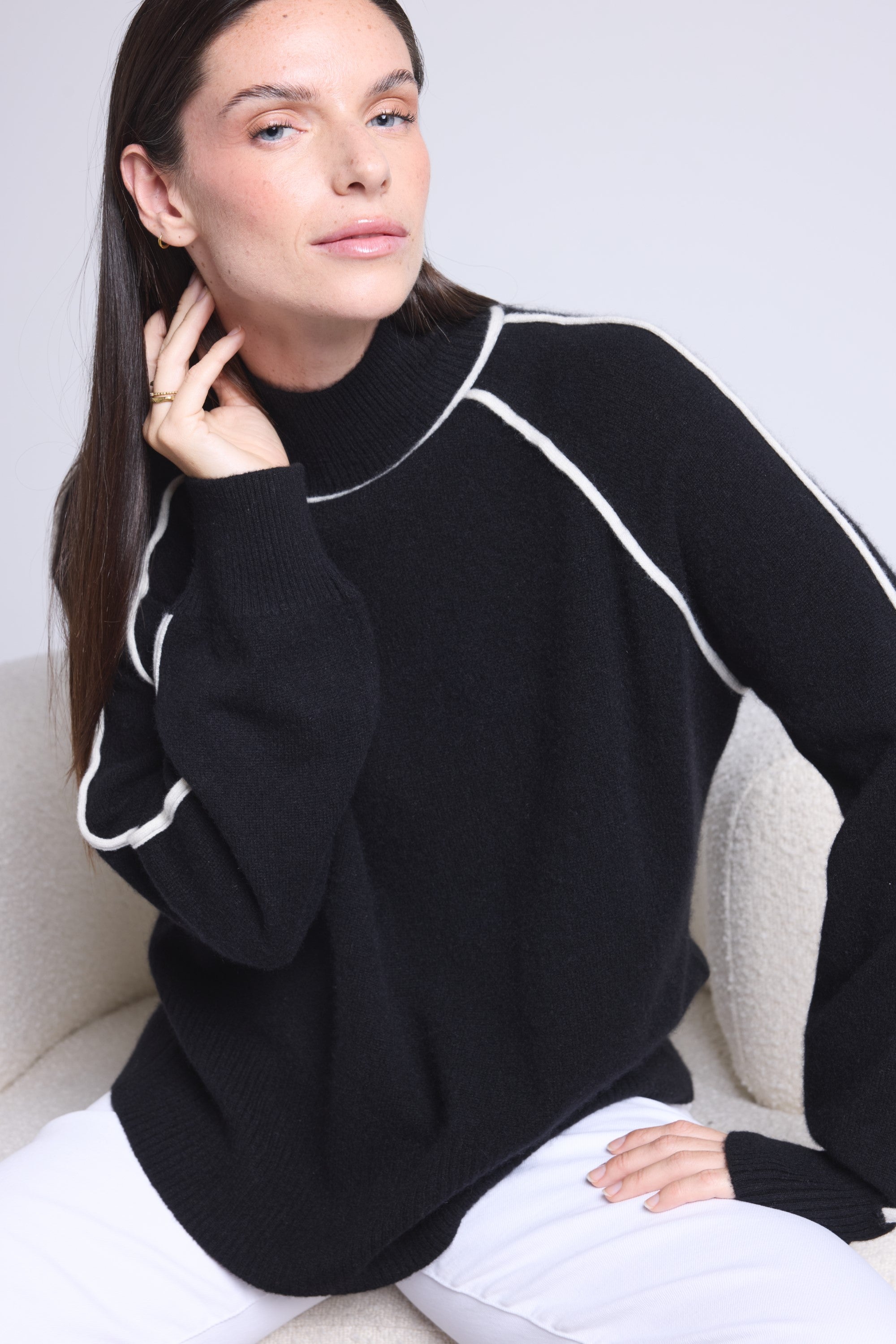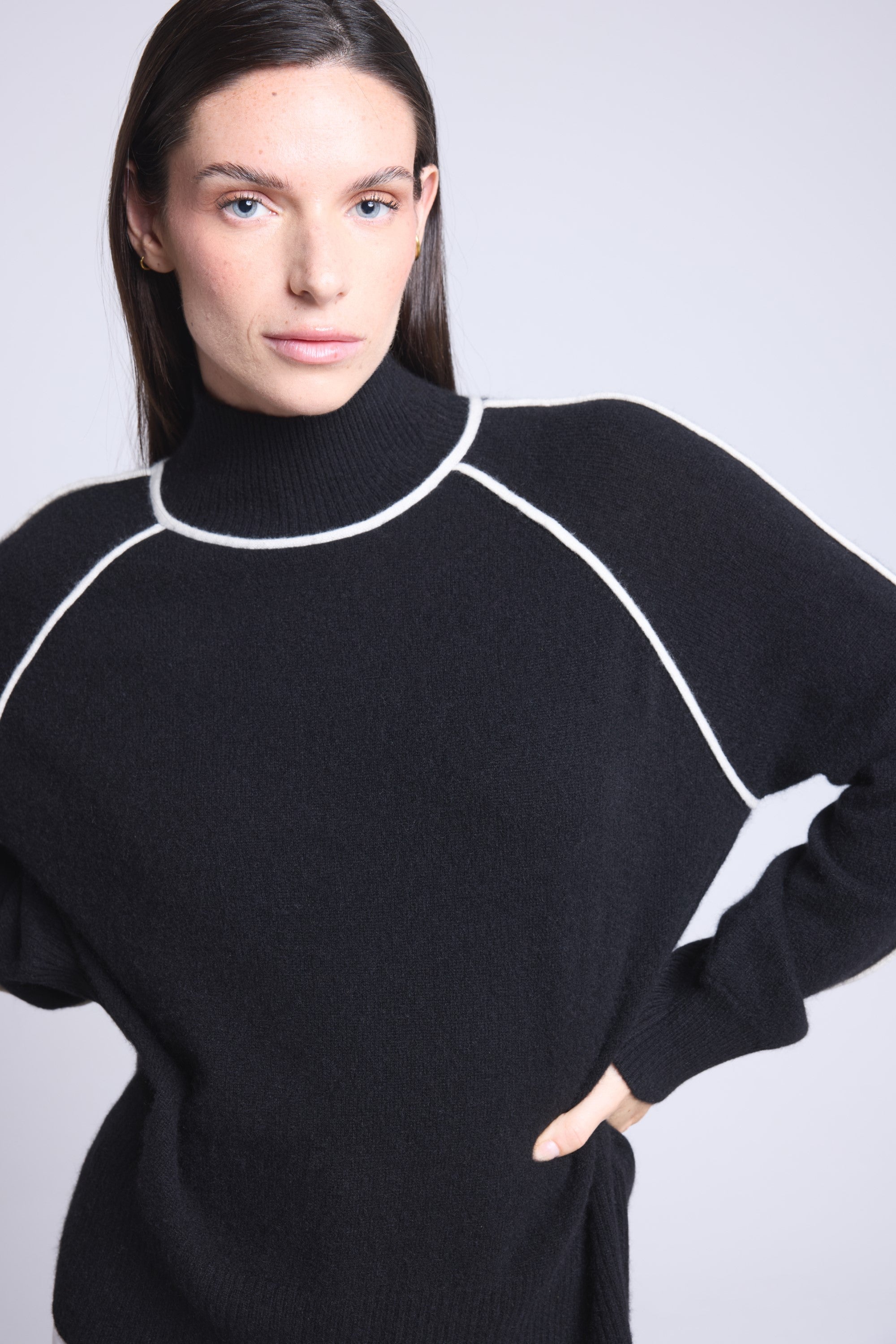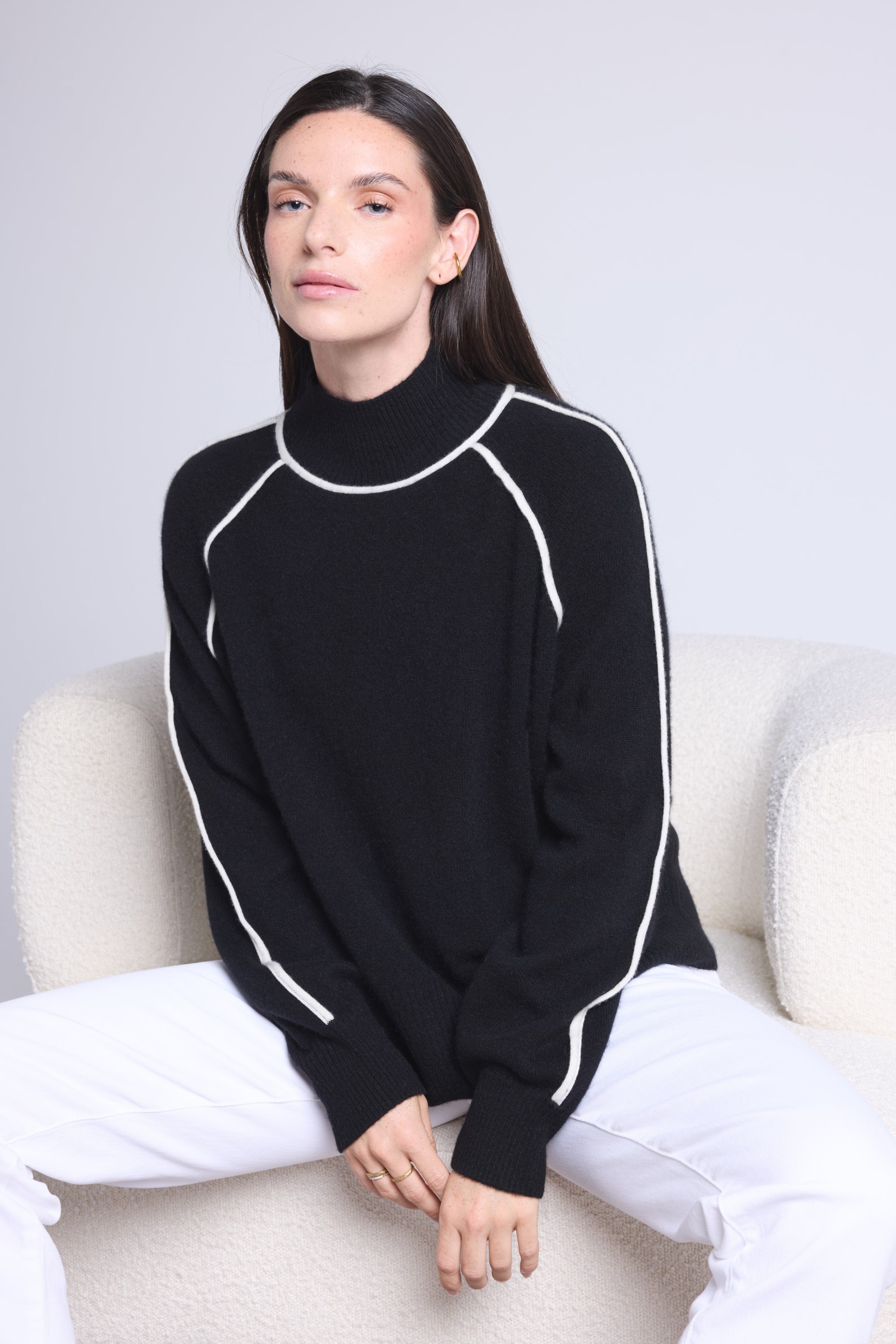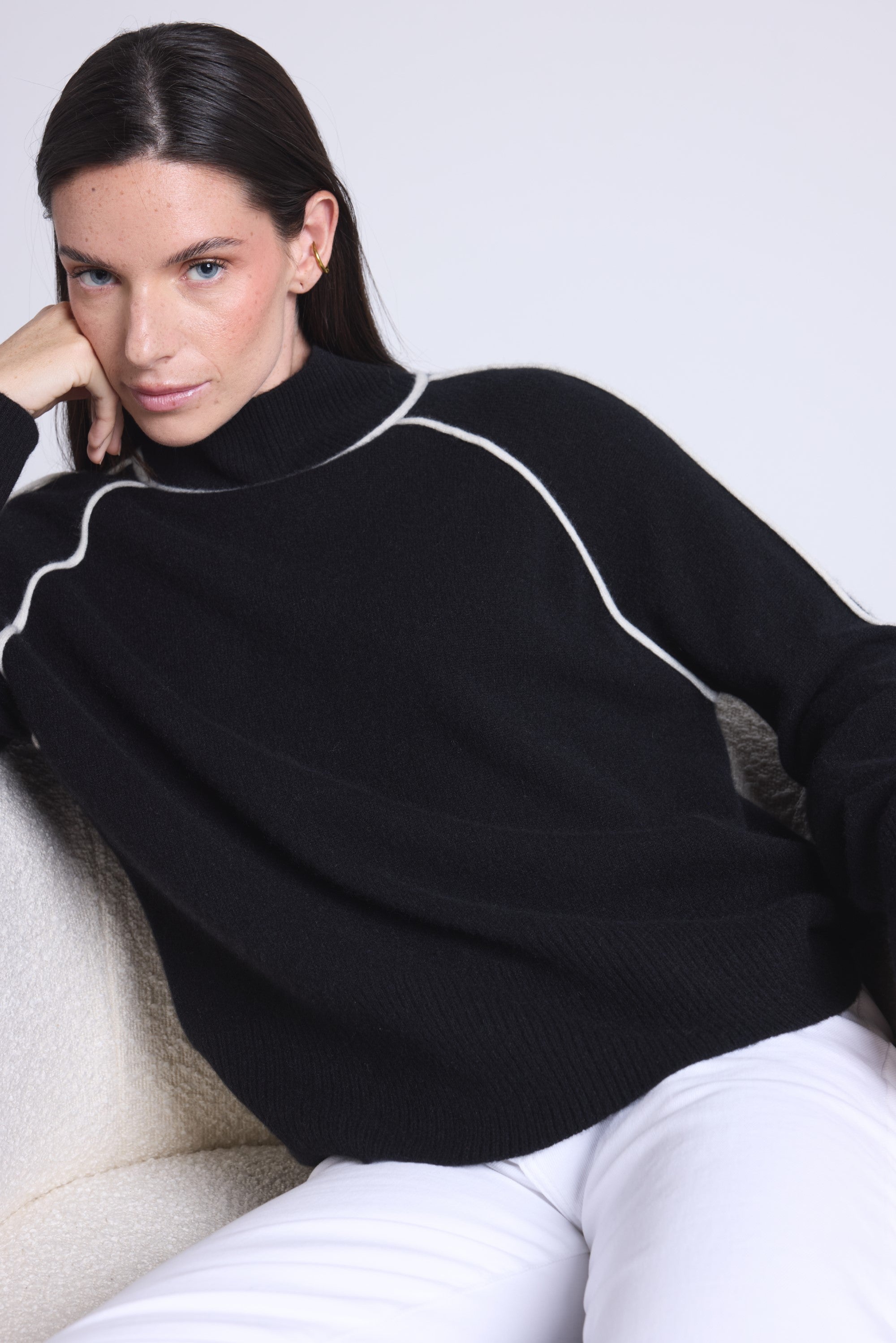 Pull "Megan" 100% Cachemire – Col montant et finitions contrastées