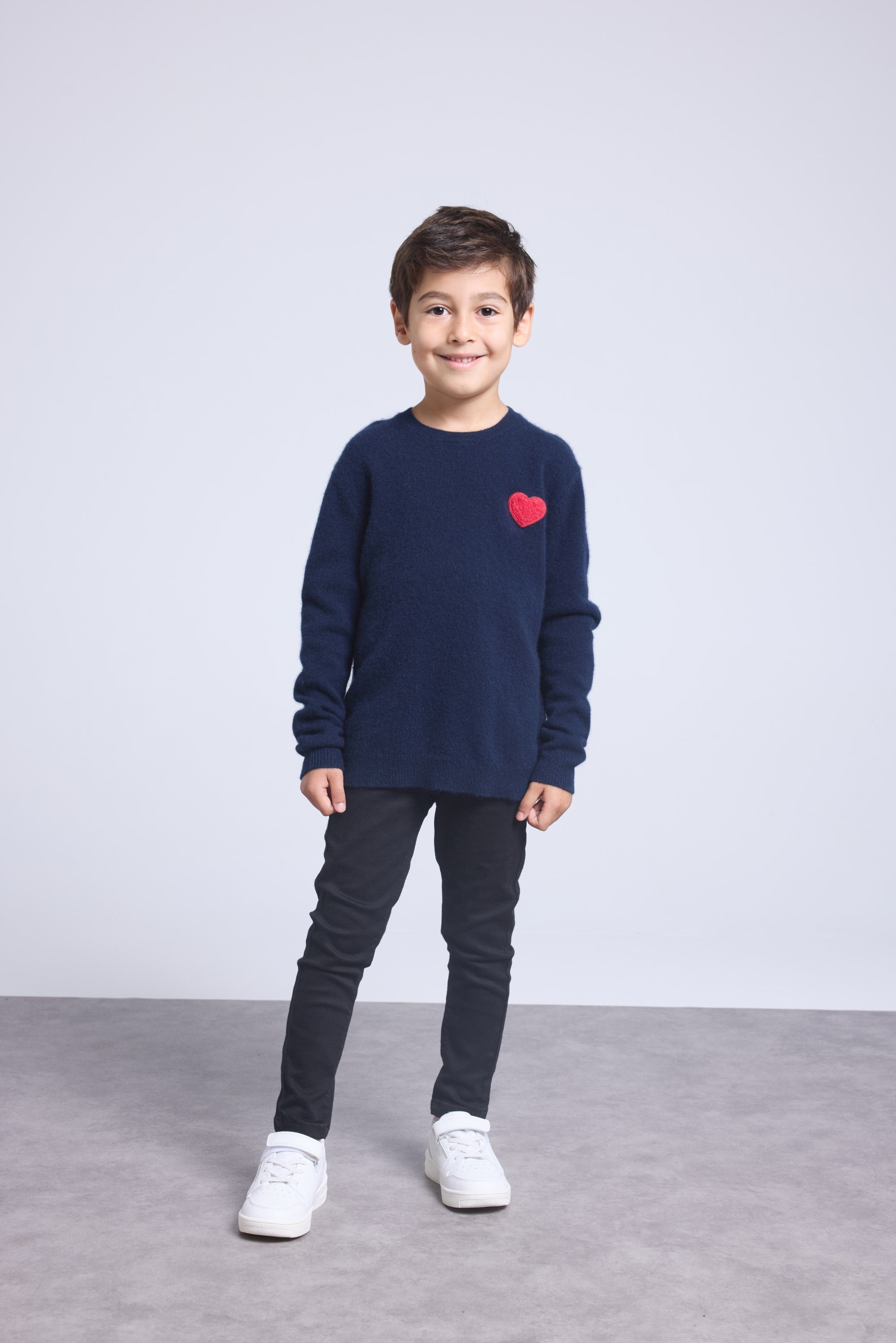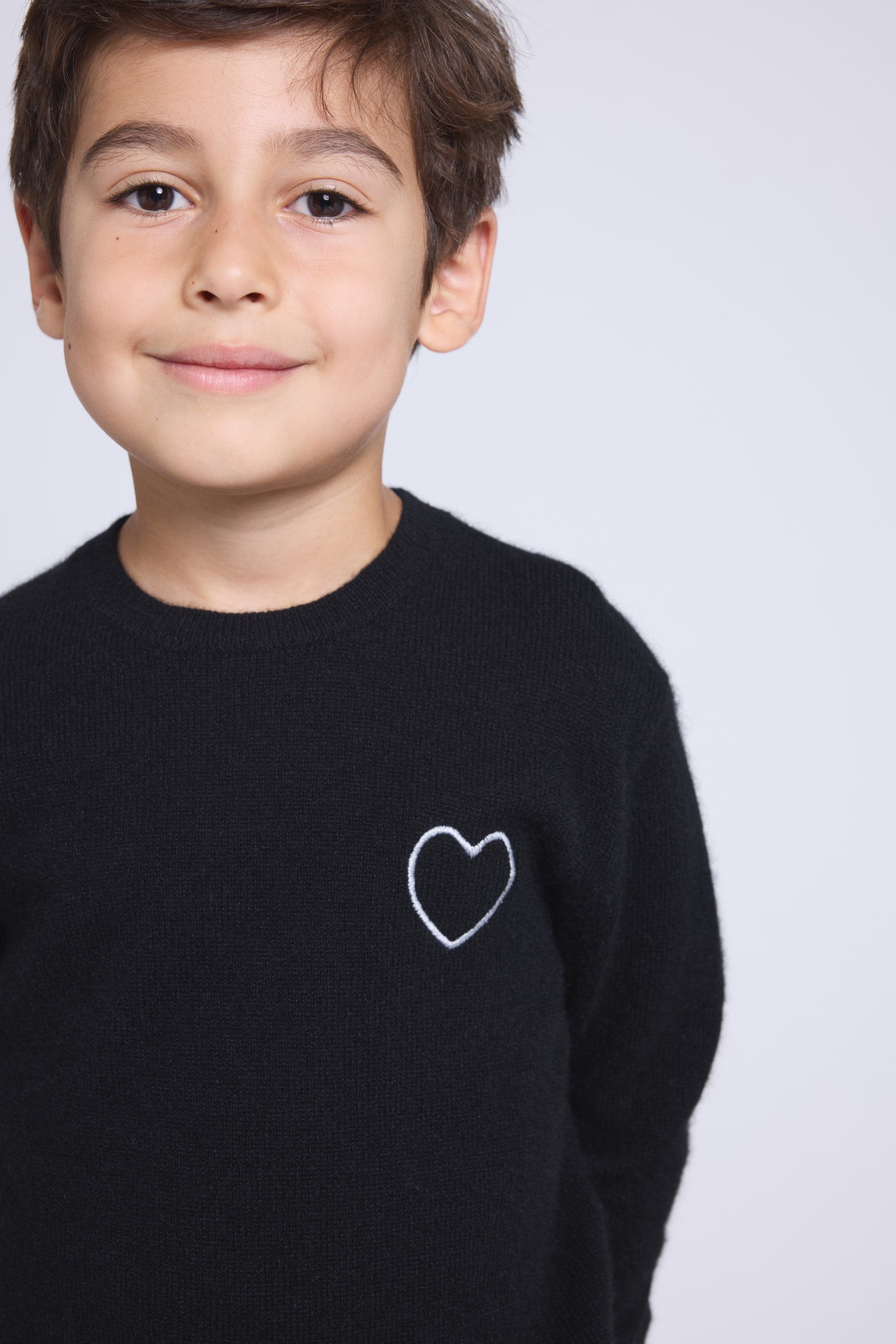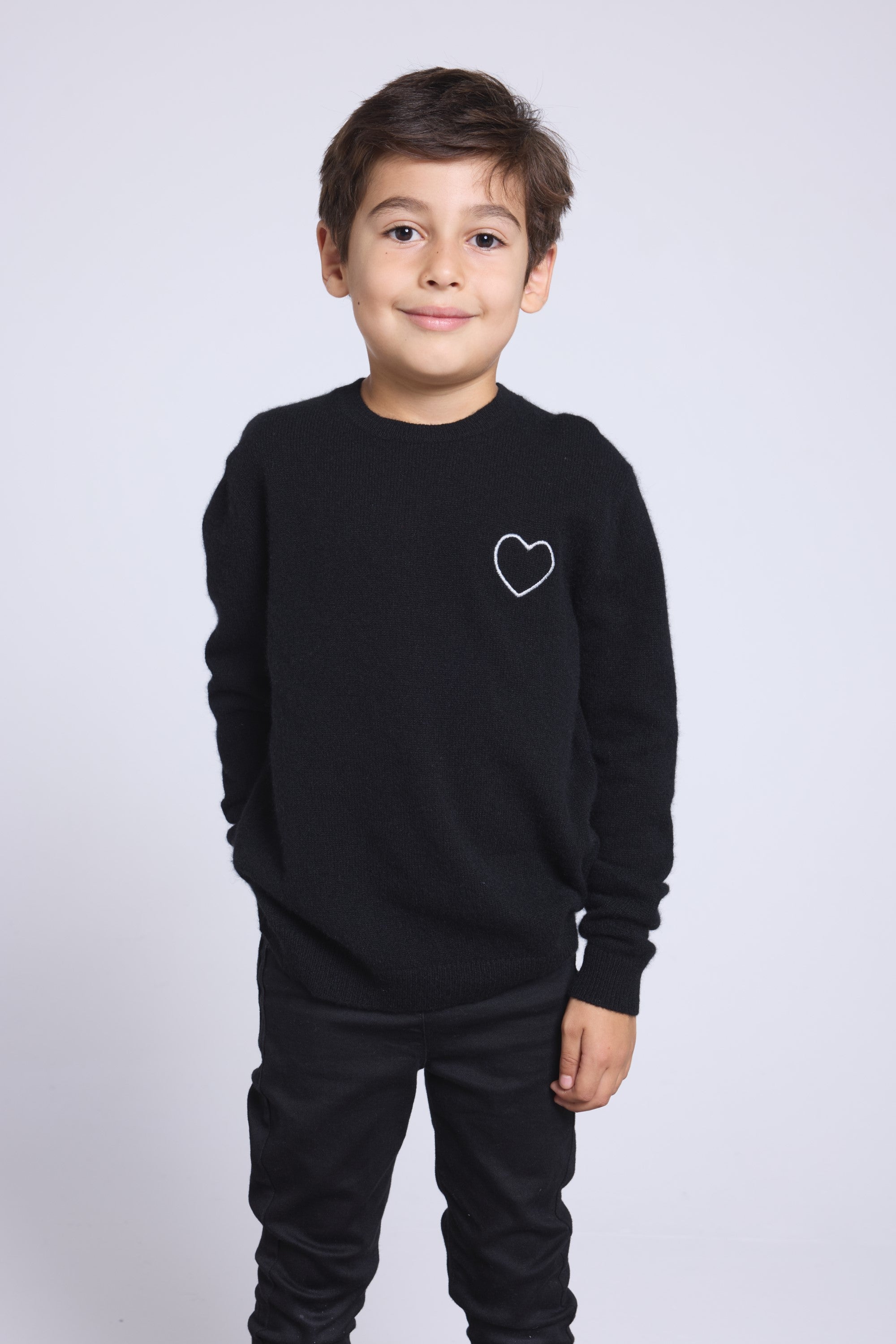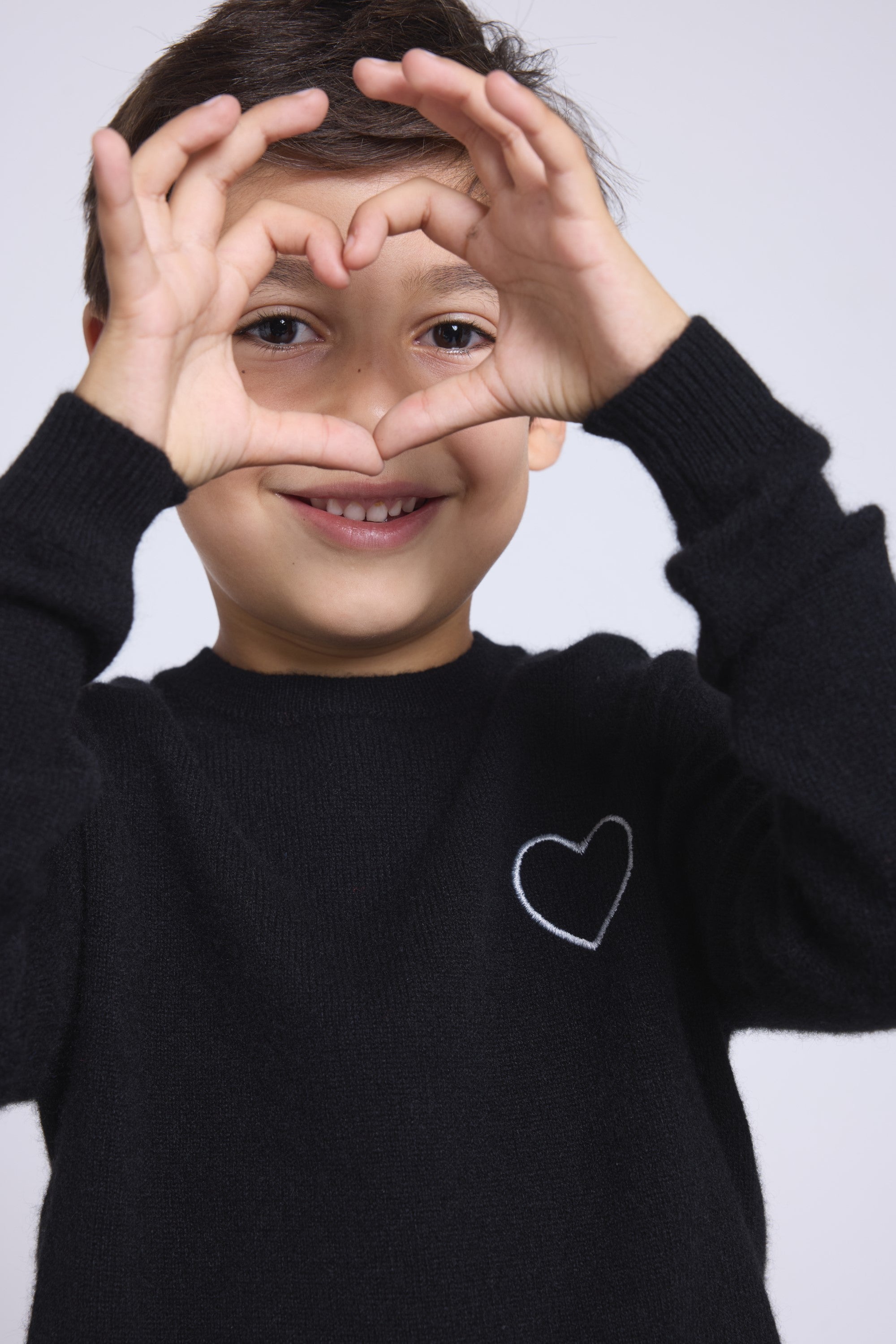 EVY – Pull enfant col rond en cachemire avec broderie cœur