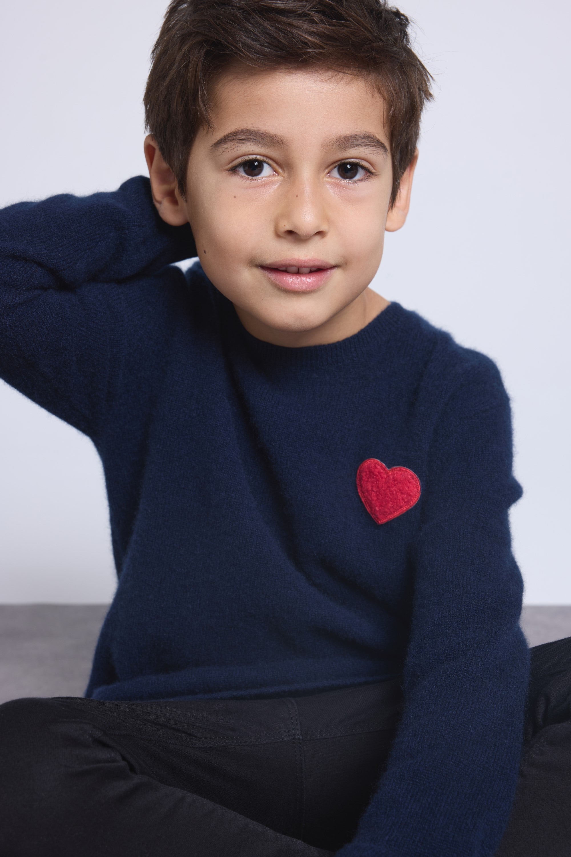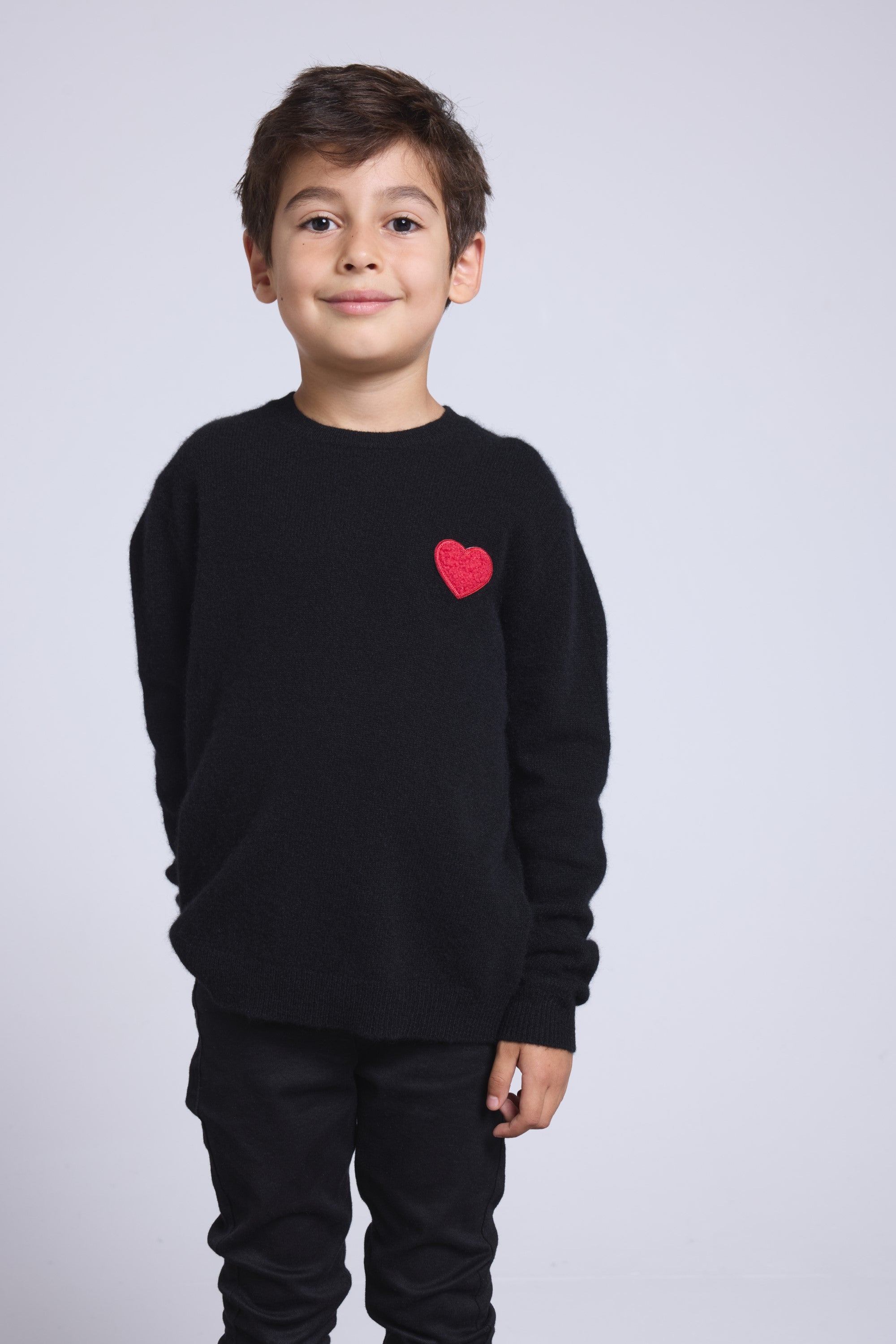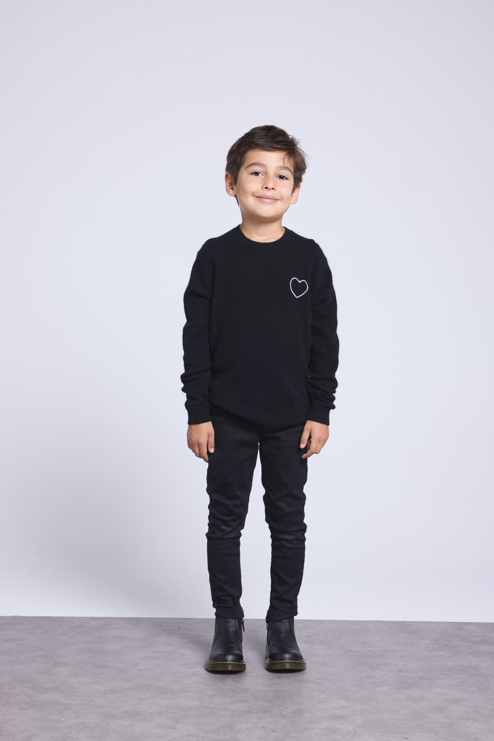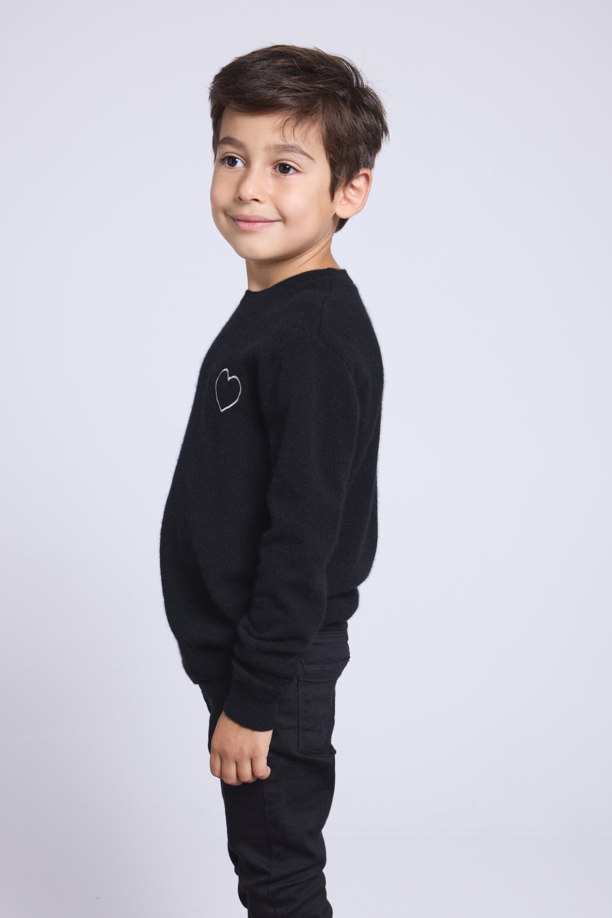 EVY – Pull enfant col rond en cachemire avec broderie cœur