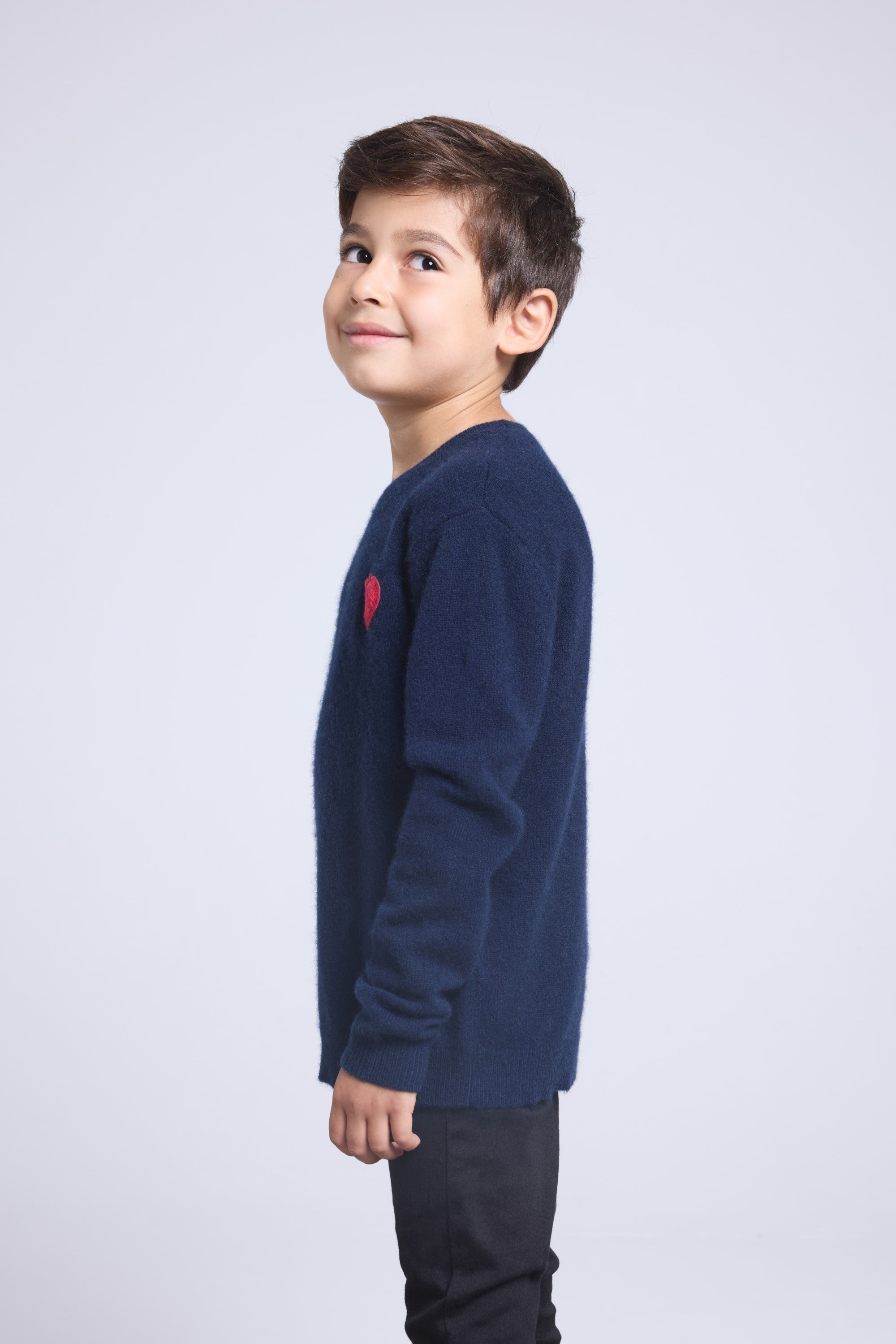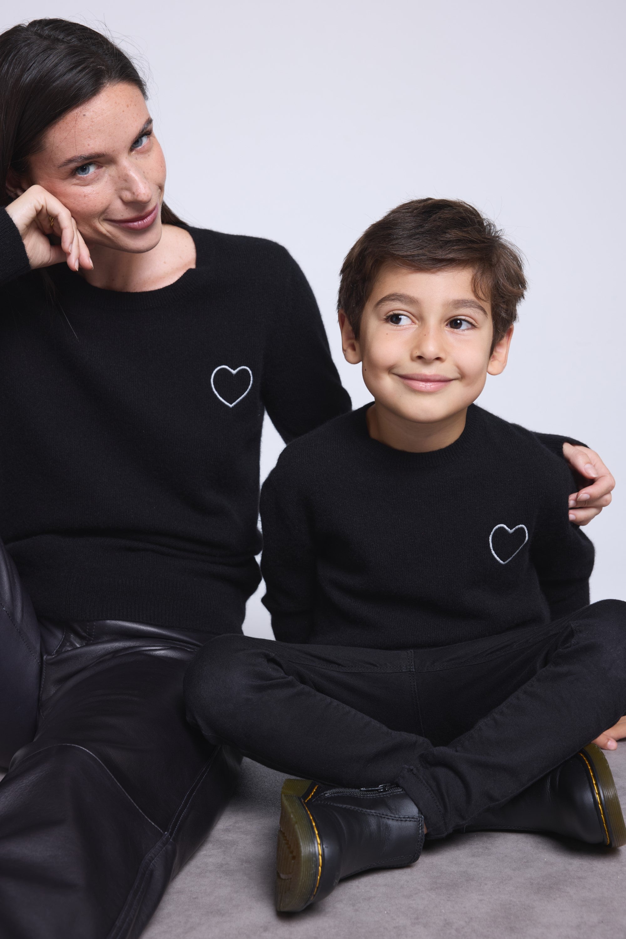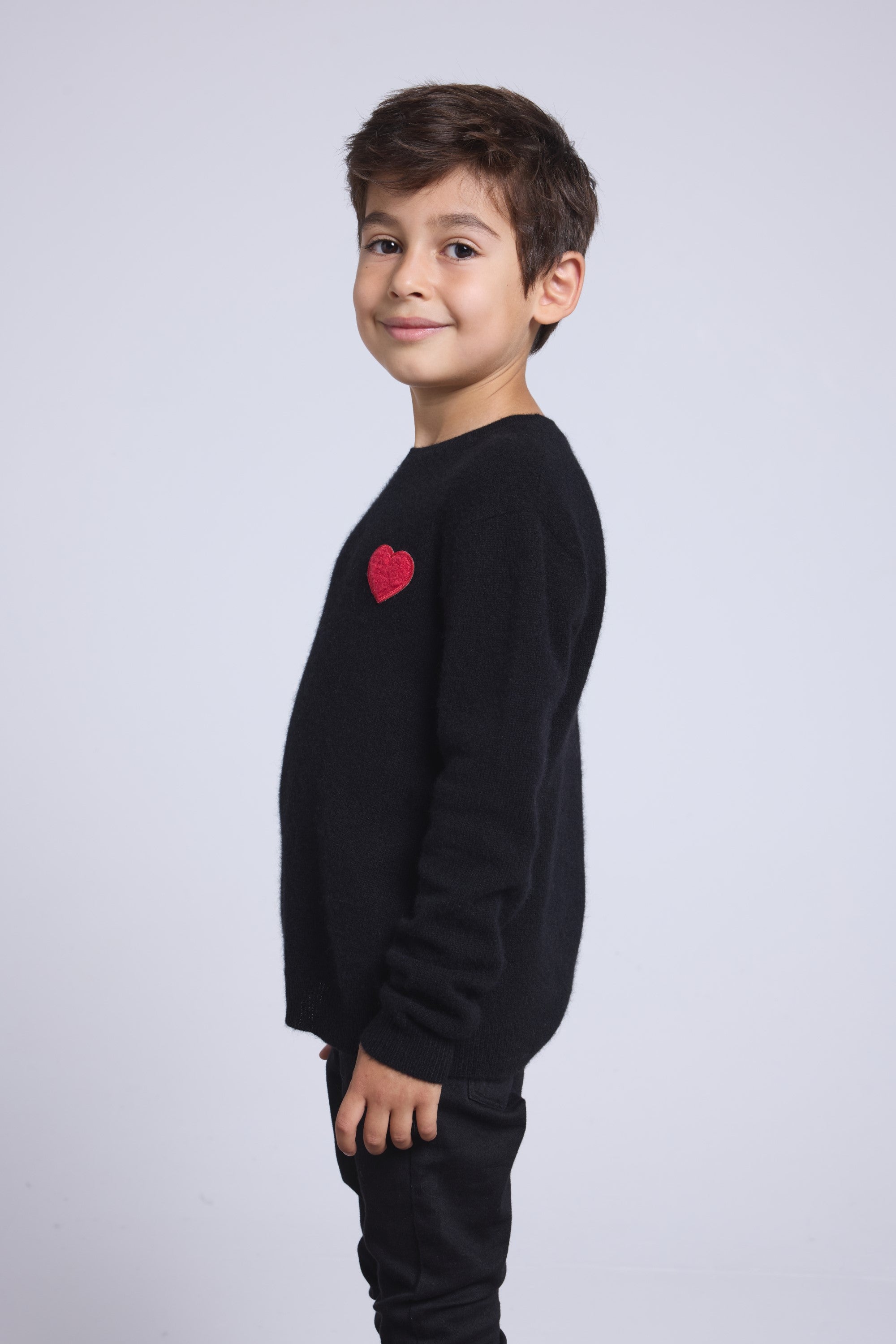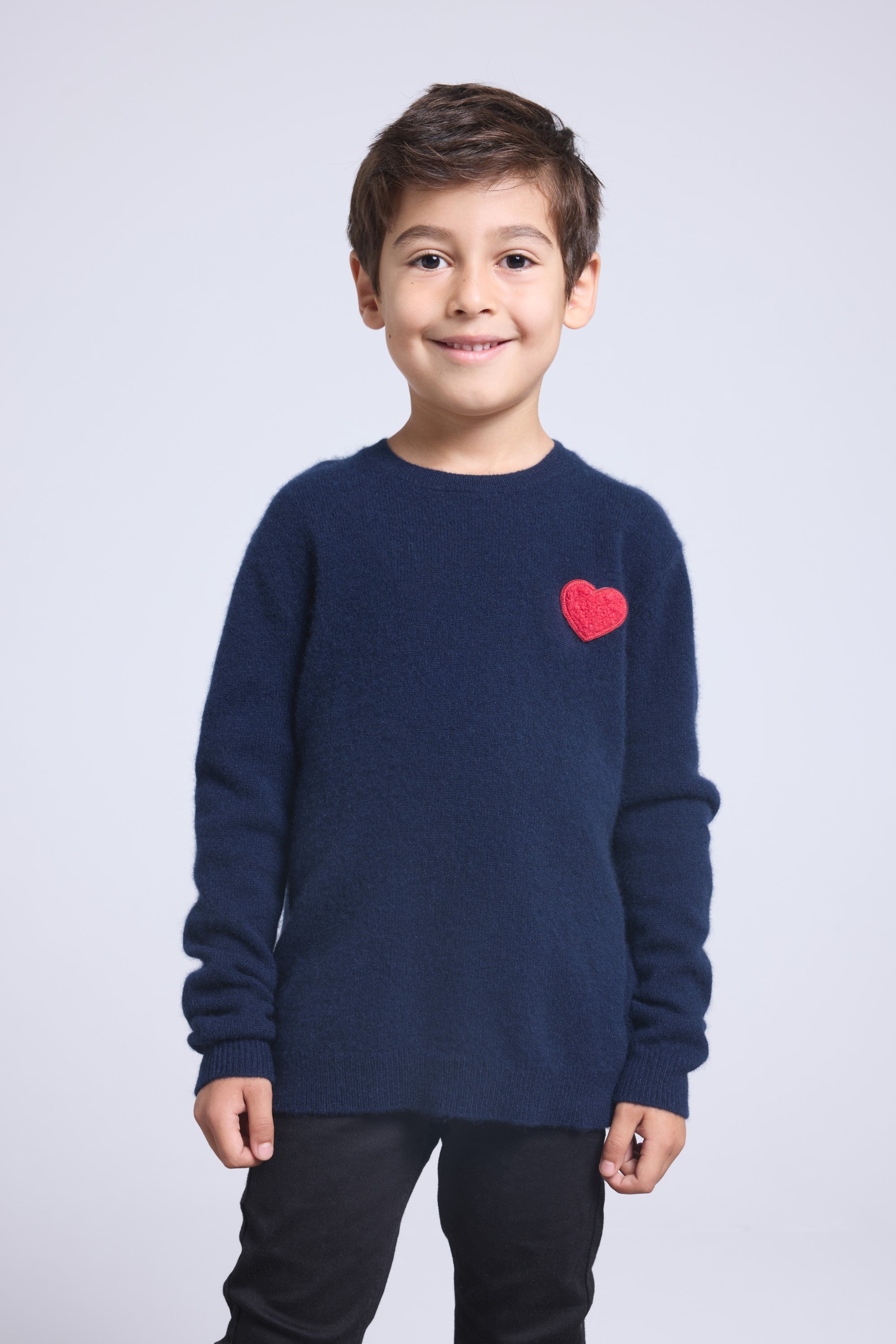EVY – Pull enfant col rond en cachemire avec broderie cœur